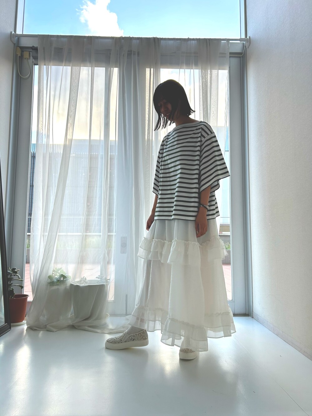 スカートがとってもお気に入りです🫶🏻 白いスカートは着回しやすいし、お姫様みたいな気分になれて大好きです! 白と緑の組み合わせもおすすめです💚