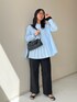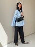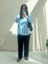 ライトブルーのシャツと黒のパンツですっきり仕上げました。 ゆるフィットパンツは本当に動きやすくておすすめです!
