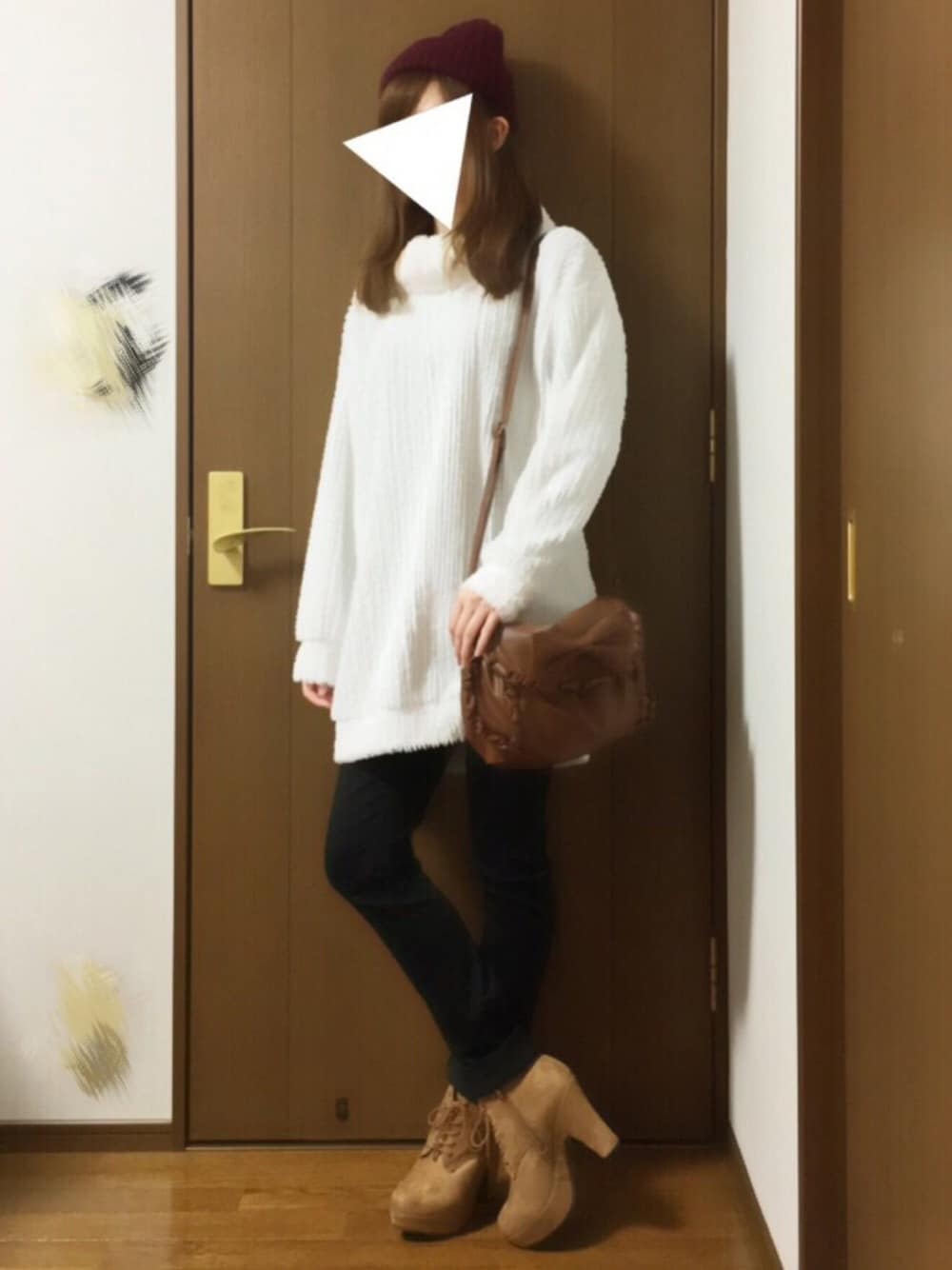 今日は天気が悪くて 髪の毛ふわふわしてたので ニット帽被りました!笑 トップスは最近買ったのですが 首元までふわふわしてて暖かいし 丈もいい感じでお気に入りです!
