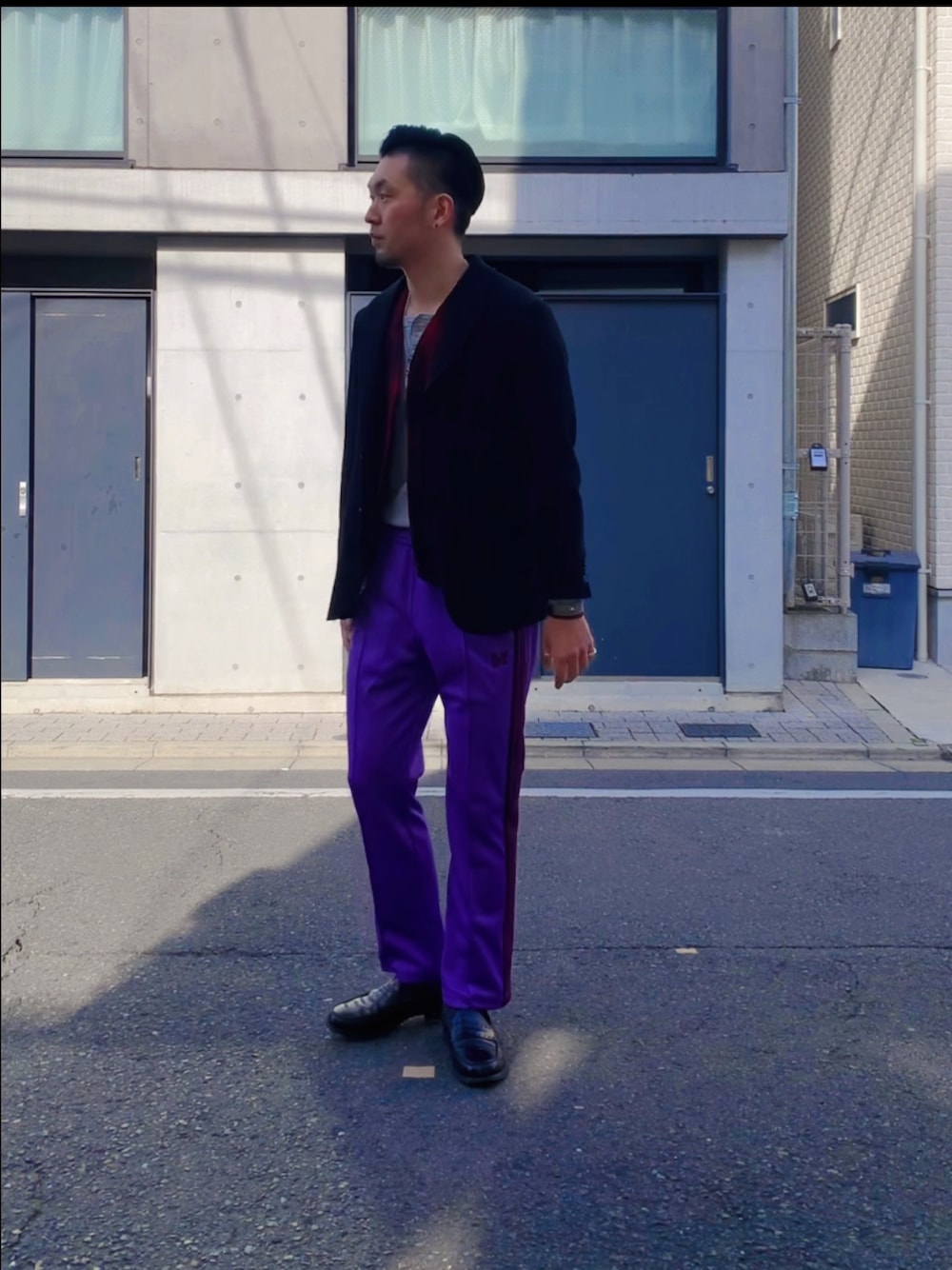 Jacket : #influence best : #BEMIDJIWOOLENMILLS inner : #HANES trackPants : #needles #NEPENTHES Shoes : #sanders #hobo Ring1 : #geneveramone Ring 2 : #sunshinereeves Ring 3 : #stevearviso Bangle 1 : #tomhawk Bangle 2 : #bufflodancer Bracelet : #ilbisonte leatherbracelet : #goros chain : #TADYandKING wheel : #TADYandKING hook : #TADYandKING featherright : #nativespirit featherleft : #nativespirit Pendant 1 : #IvanHoward pendant 2 : #nativespirit Watch : #rolex #submariner 《Point of outfit》. まいど! クローゼットを漁っていたら、20年程前に購入した、 サイドベンツのテーラードジャケットが目に入ってきた。 思い出に耽りながら、袖を通す。 当時、華奢だった為少しオーバーサイズで着用していたが、今着てみるとジャストサイズ。 特に奇抜なデザインでは無いので、流行り廃れに振り回されず現在もワードローブの一部てして現役。 コーディネートに関しては、昔からある定番の組み合わせ。 トラックパンツだとカジュアル過ぎるので テーラードジャケットとローファーで程良くドレスアップ。 漢ならこれくらいの重ね着で充分 スポーツ×ドレス ほな!! . ♦︎Model Data♦︎ Height : 187cm weight : 78kg . ♦︎Location♦︎ #street #tokyo .