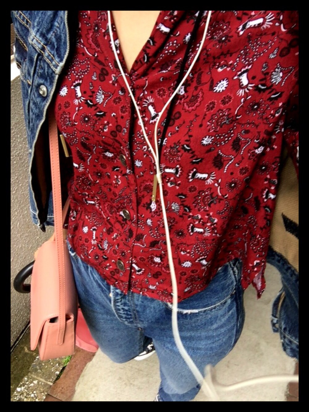 花柄レトロシャツ デニムおんw٩(。•ω•。)وデニム