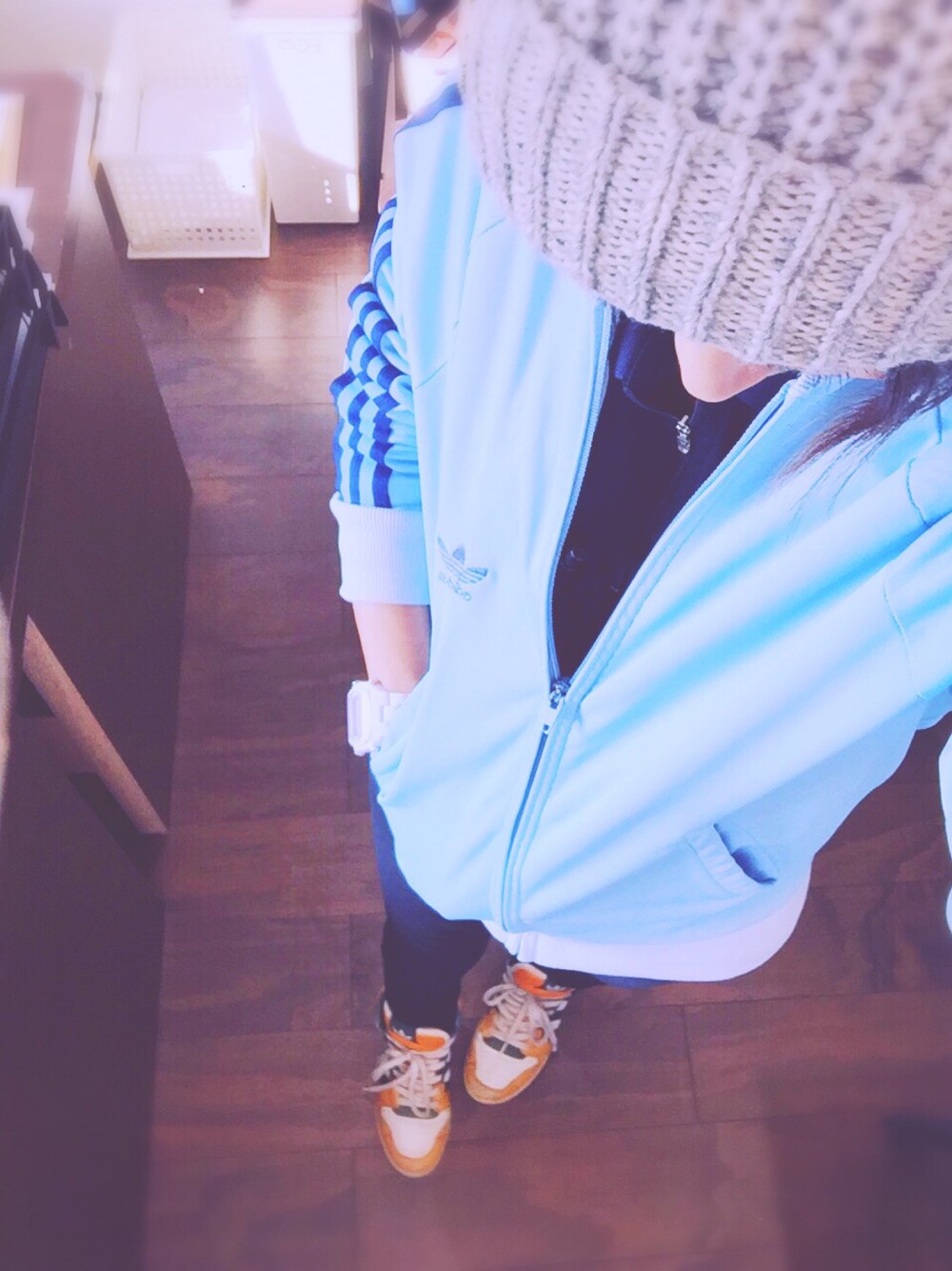 朝寒かったから、 いただきもののアディダスジャージ着てみました。 仕事着の上からなんで、微妙(笑) んー。まっ。さむいからオッケーって事で。
