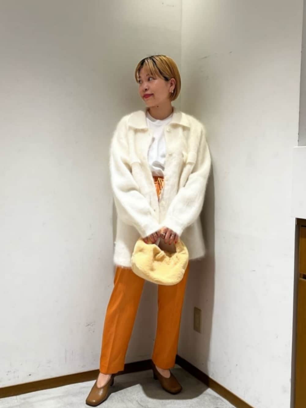 【サイズ感】 カーディガン:ゆったり メンズライクなリラックスシルエットが特徴です。 パンツ:ややゆったり Mサイズ着用しています。もも周りやヒップなどに程よくゆとりがあるサイズ感となりました。 【コーディネートポイント】 CPOシャツ型のニットカーディガンをキレイ目な雰囲気でスタイリングしました!カーディガンはモヘヤ混の糸を使用しており、アウター感覚で温かく着ていただけると思います!