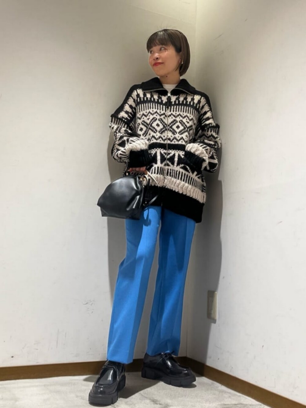 【サイズ感】 カーディガン:ゆったり フルジップでアウター感覚でお召しいただけます! 【コーディネートポイント】 カーディガンにボリュームがあるので、細身のパンツでバランス良くスタイリングしました。 カウチンのカーディガンは羽織りとしてはもちろんですが、ジップを閉めてハイネック出来ても首回りがとてもお洒落な雰囲気でおすすめです!