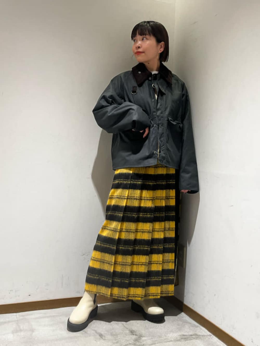【身長】158センチ 【普段サイズ】 トップス S/ボトムスS・M(商品によって変わります)/シューズ23.5 【サイズ感】 アウター:ややゆったり スカート:ややゆったり 丈長めです。 【コーディネートポイント】 <Barbour>のショート丈のアウターにバランスをとって、ロングスカートを合わせました。 <O'NEIL of DUBLIN>のキルトスカートは一枚着るとお洒落度がぐんとUPするアイテムです。