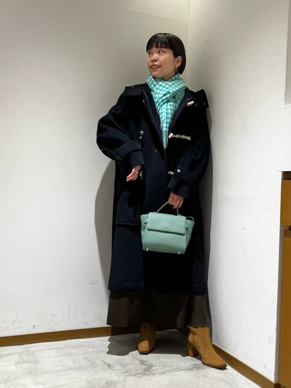 【身長】158センチ 【普段サイズ】 トップス S/ボトムスS・M(商品によって変わります)/シューズ23.5 【サイズ感】 ダッフルコート:ゆったり 158センチMサイズを着用しています。 ワンピース:標準的 158センチMサイズを着用しています。 【コーディネートポイント】 カジュアルな印象のダッフルコートをフレア型のワンピースと合わせて女性らしくスタイリングしました。小物はライム色のマフラーとバックで、目を惹くカラーをプラス!