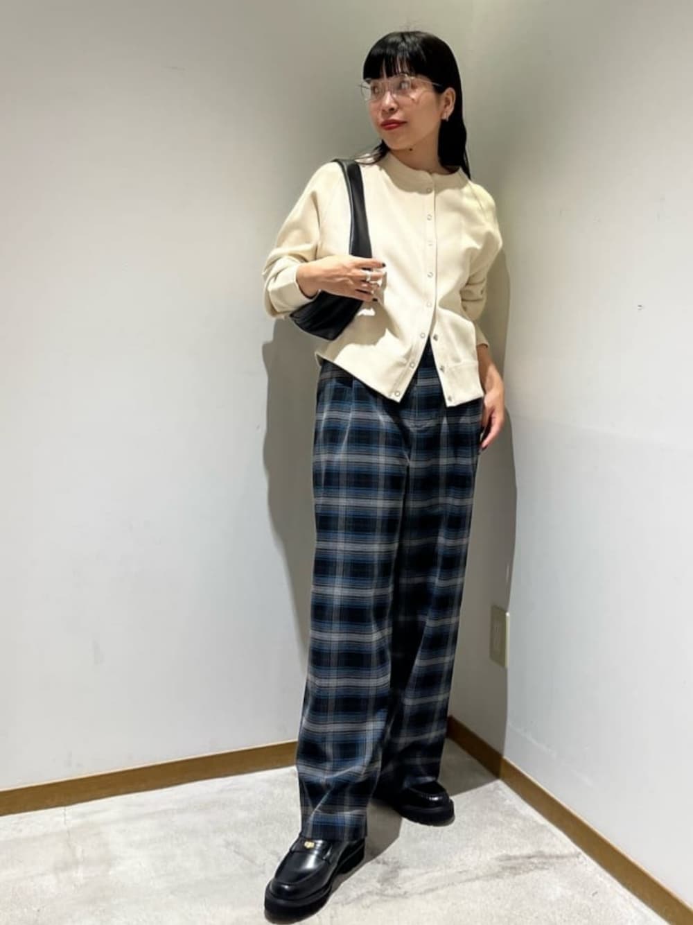 【身長】158センチ 【普段サイズ】 トップス S/ボトムスS・M(商品によって変わります)/シューズ23.5 【サイズ感】 カーディガン:ゆったり 重ね着もしやすくこれからの季節に羽織りとして大活躍間違いなし!のカーディガンです。着丈もヒップにかかかる安心感のある長さです。 チェックパンツ:ゆったり 158センチSサイズ着用 【コーディネートポイント】 ブルーのチェックパンツをコーディネートの主役に、トップスはシンプルなホワイトのカーディガンでクリーンな印象にまとめました。