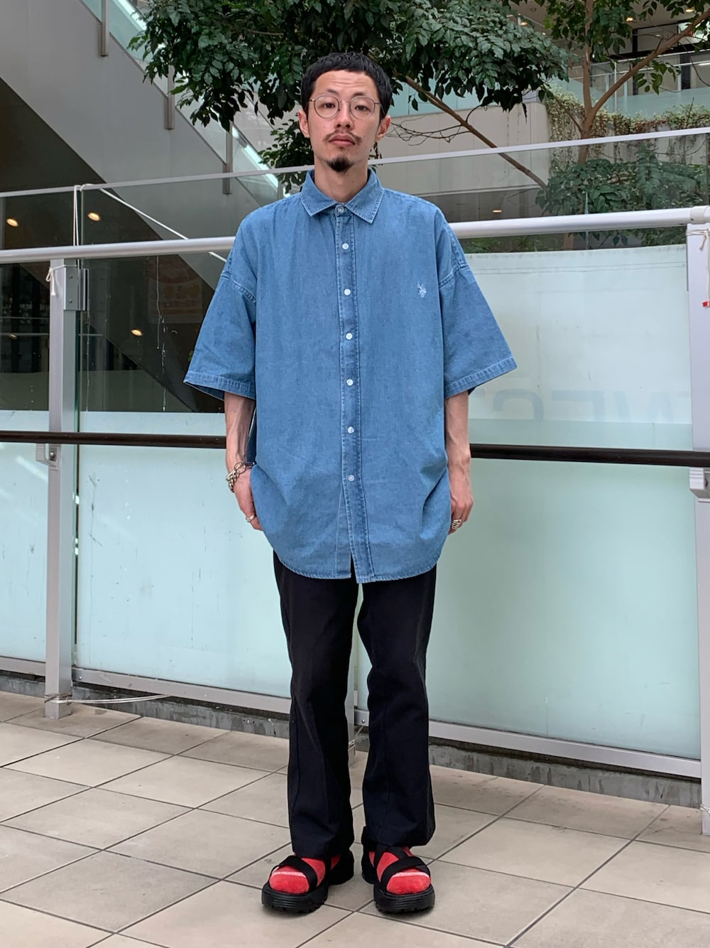 オーバーサイズのデニムシャツをシンプルに黒のパンツで合わせました。 テープサンダルに合わせたカラーソックスがポイントです。 着用アイテム : 【U.S. POLO ASSN. /ユーエスポロアッスン】別注ワンポイント刺繍ロゴビッグシルエットシャツ サイズ感 : Mサイズ着用。大きめのサイズ感で、一般的なシャツのLサイズ相当。袖丈は肘が隠れる程度。着丈はお尻が隠れる程度。 着心地 : 薄手なので夏も着やすい厚さ。 着用アイテム : 【MEI/メイ】リサイクルナイロンテープチャンキーソールサンダル サイズ感 : Sサイズ着用。普段26センチのスニーカーを着用していて丁度いいサイズ感。 着心地 : ホールド感もあって歩きやすいです。