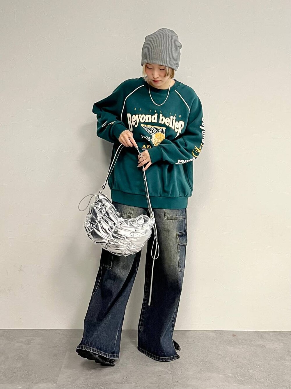 テーマ:ザ・カジュアル スウェットにデニム、ついでにビーニー被ってザ・カジュアル☆ 【スウェット】 着丈もちょうど良く着れます。 ラグランスリーブなので、肩周りきちんと落ちてくれるので◎ 【パンツ】 大人気のヴィンテージデニム! 着丈長めなので、厚底ブーツなどで合わせるのも◎ 脚細長く見えちゃうのが嬉しいですね 【バッグ】 これから発売のキラキラバッグ! これにキャラクターのチャームを付けたいですね。 容量結構入りそうです。ベルト調整すると斜めがけも出来ます。 ペットボトル、入ります。