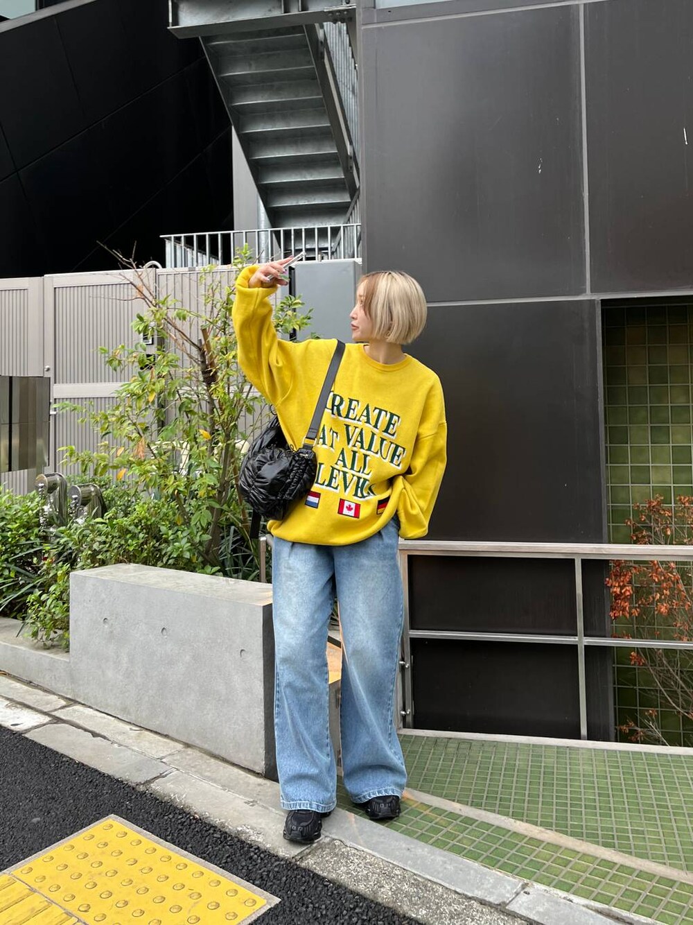 テーマ:カジュアルな日 ゆるっとしたトップスとボトムスでカジュアルな日に! 【セーター】 ロゴやワッペンが付いていてとってもキュートなニットです。 これ一枚でアクセなしで着れるので、寒い冬のコーデにぴったり。 しっかりした編み方なので、多少重さは有りますが、高級感が出るのでお手に取ってほしいです! 【パンツ】 タックの入ったデニムパンツです。 見えないのですが、ベルトループのところにカラビナなどを付けられる金具付き。 太めなので、寒い時は中に機能付きインナーを着れます。 (そして着ています、この写真で。) 意外と着膨れしないのも高ポイントです。