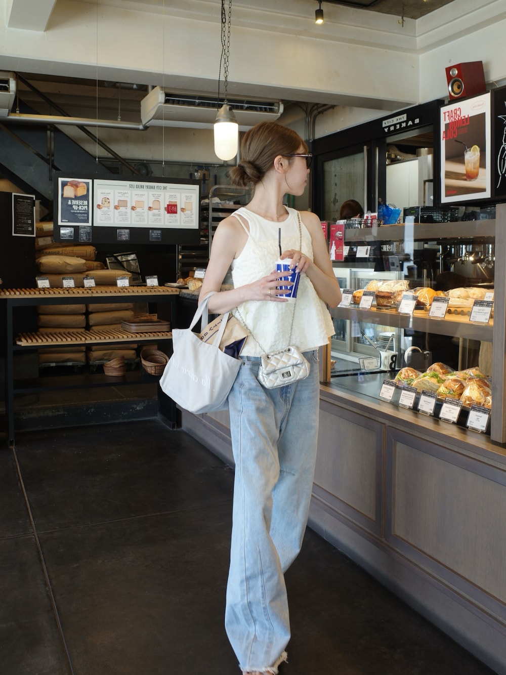 kannaのデニムパンツ「[DENIM COLLECTION][販売枚数9万枚突破][お気に入り登録数12万突破][トレンドNo.1デニム][全骨格美脚見えシルエット][サイズ別/身長別画像あり][低身長/高身長/大きいサイズ有]裾フリンジバレルレッグデニムパンツ」を使ったコーディネート