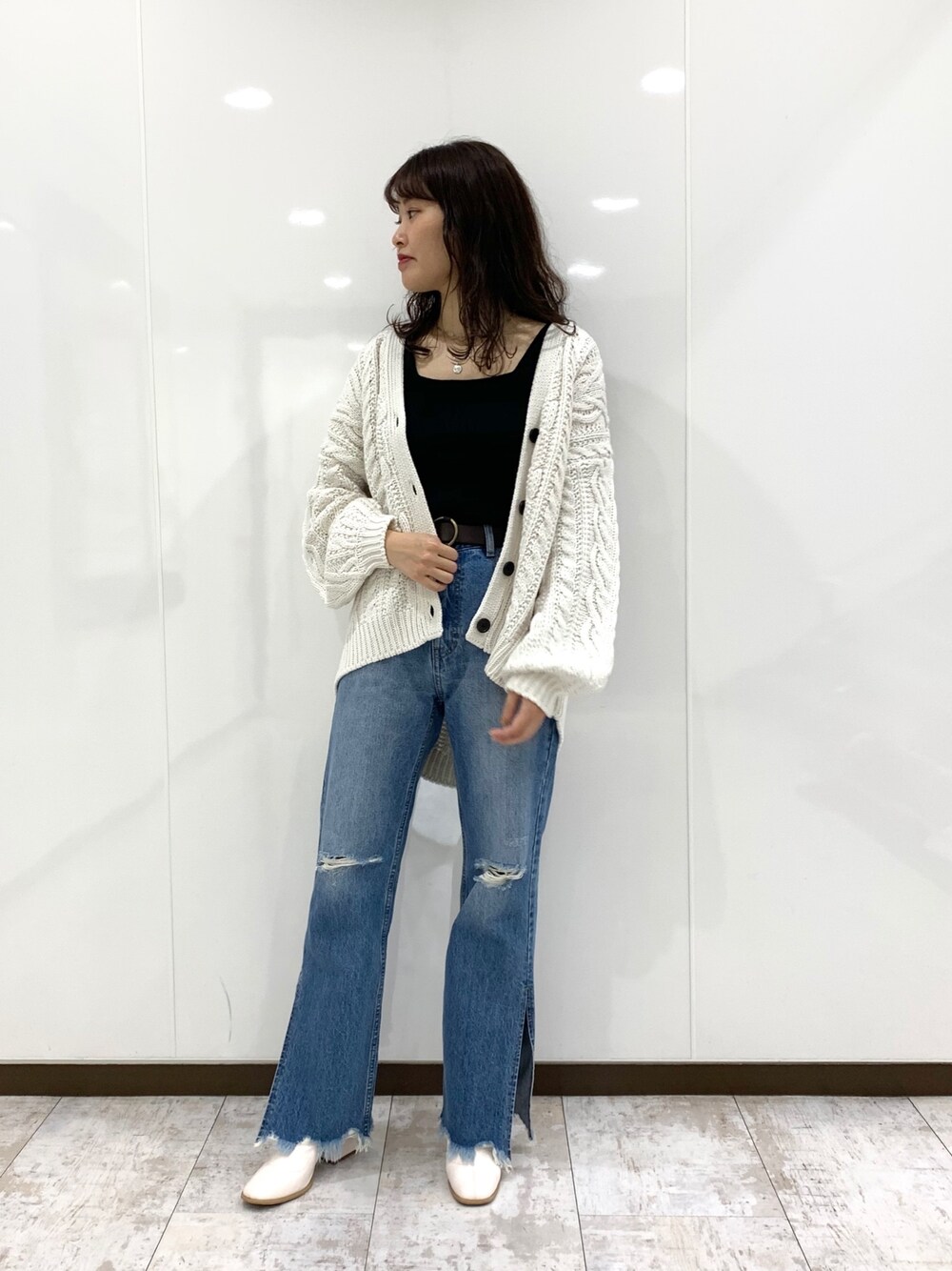 yui.のカーディガン/ボレロ「ケーブルボリュームカーディガン (ローゲージニット/ボリューム袖)」を使ったコーディネート