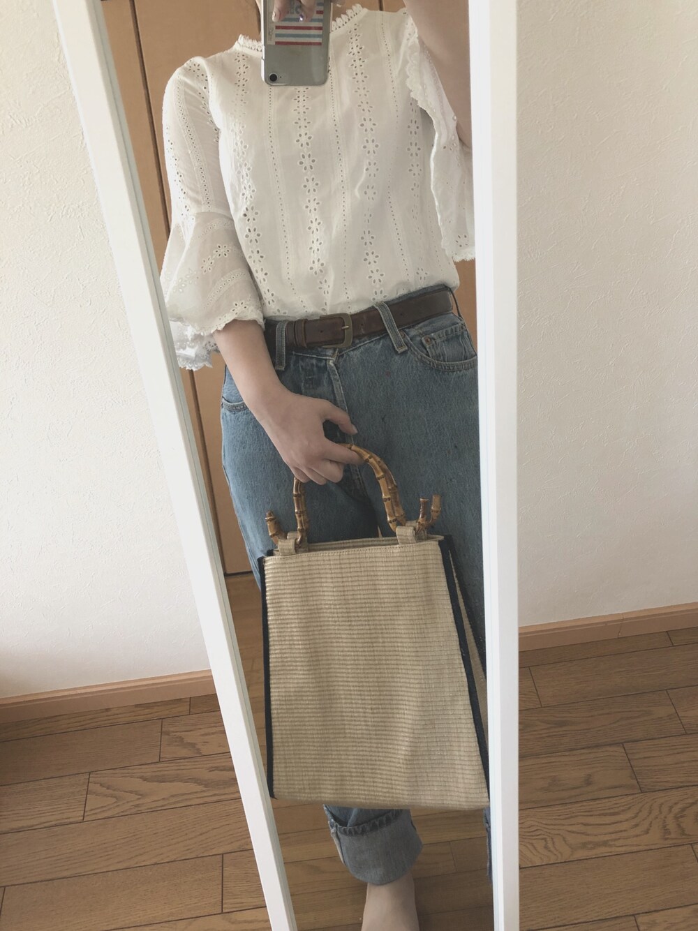 こじのシャツ/ブラウス「小花刺繍ベルスリーブブラウス」を使ったコーディネート