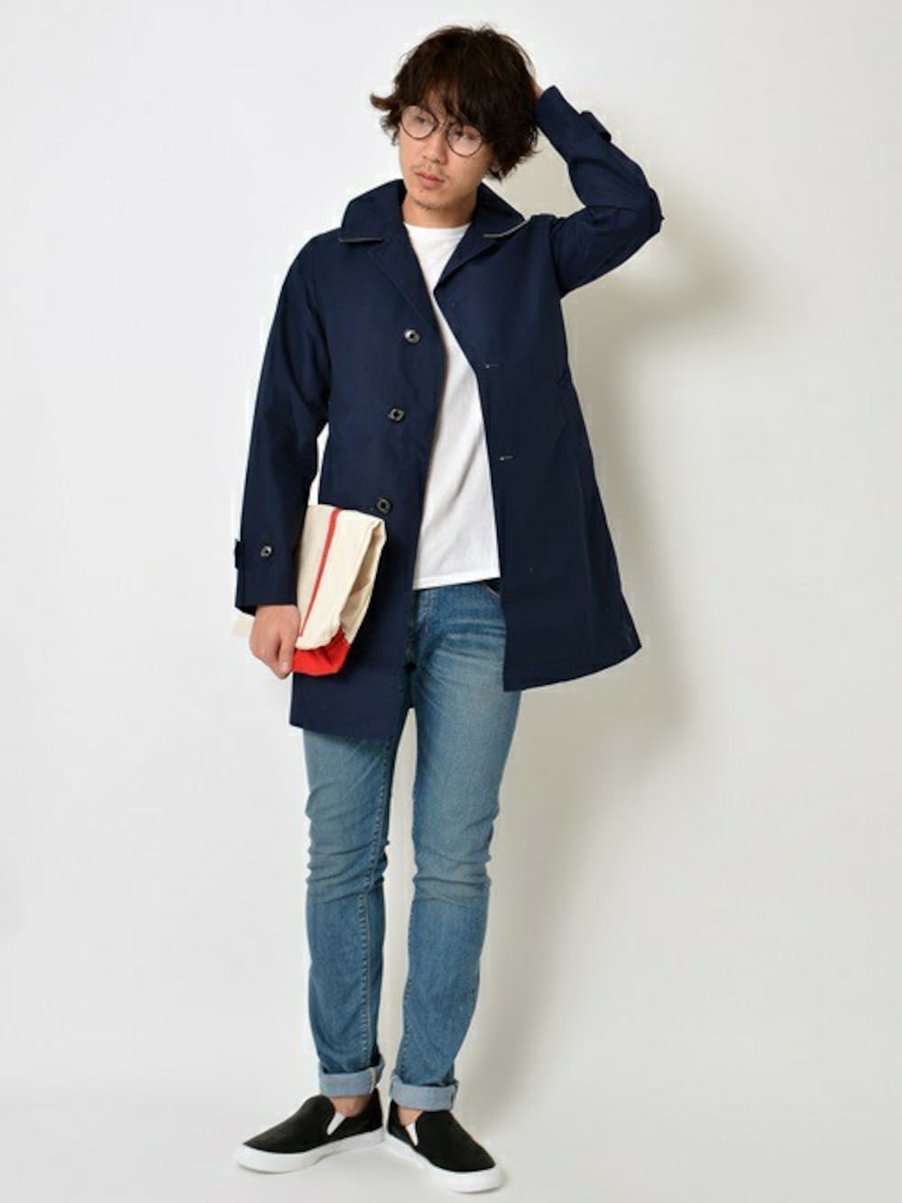 高橋のステンカラーコート「★★SHIPS JET BLUE(シップス ジェットブルー): SPRING/ステンカラーコート【ネイビー】」を使ったコーディネート