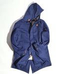 裏ボアの付いたモッズコート 発色の良いブルーが新鮮です。