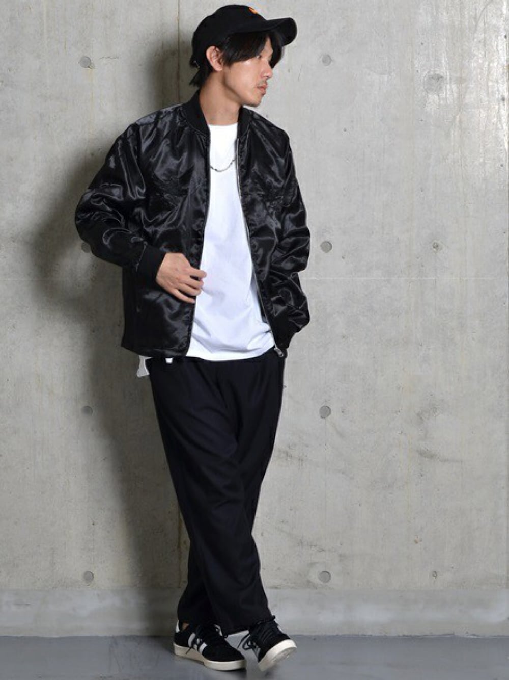 サテン素材でテロっとしたライトウェイトなスカジャン 派手じゃないので合わせ易さ抜群です。