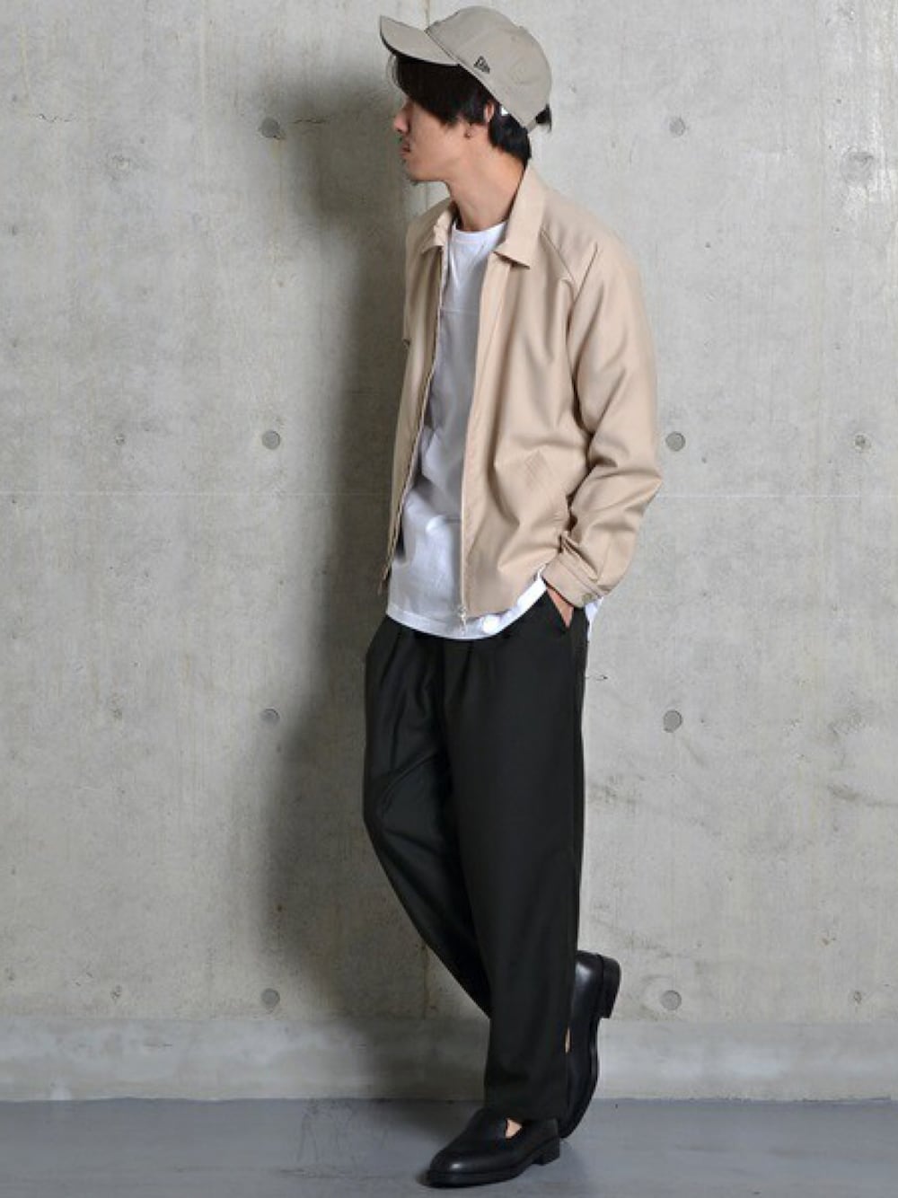 裏地がドットになったドリズラーブルゾン 落ち感のあるワイドパンツで今っぽく