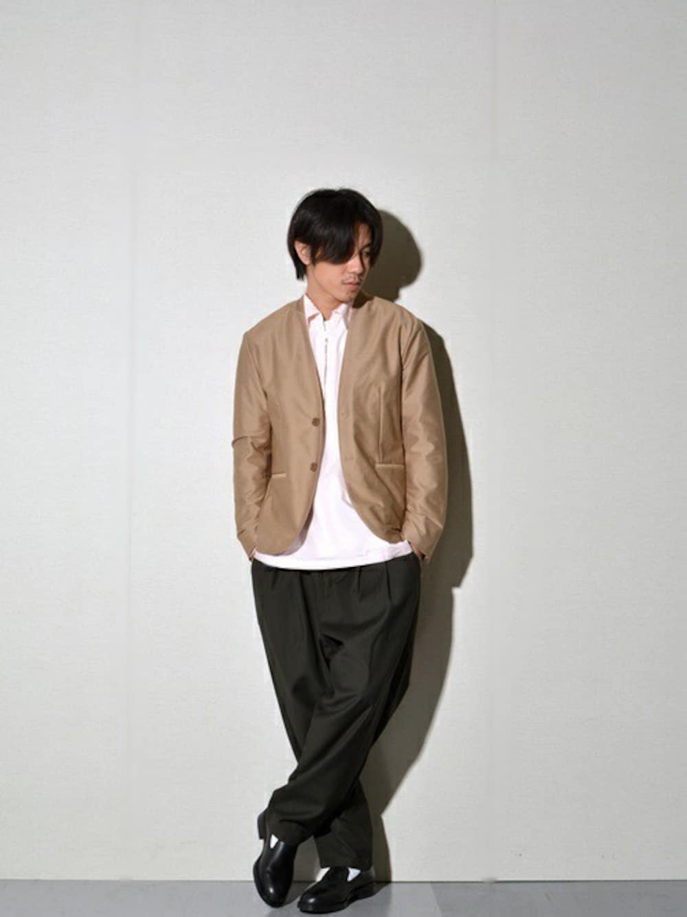 高橋のノーカラージャケット「SHIPS JET BLUE: ノーカラージャケット」を使ったコーディネート