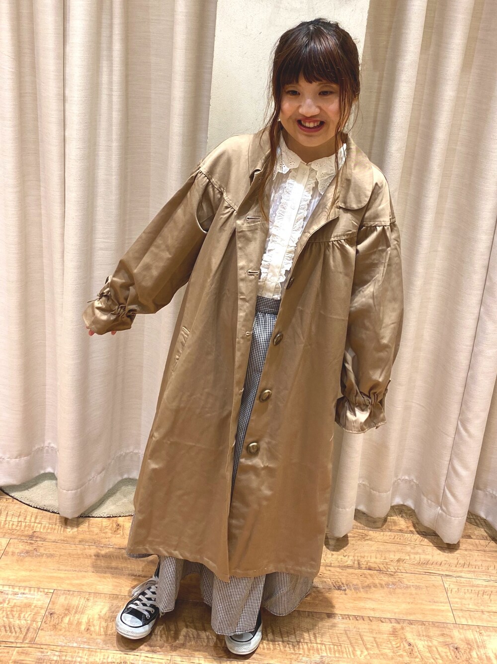 えりのスカート「ギンガム切替フレアスカート」を使ったコーディネート