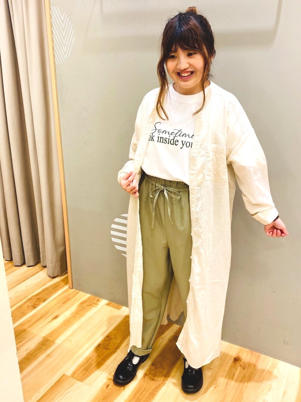 えりのワンピース「【接触冷感】胸ポケットシャツワンピース」を使ったコーディネート
