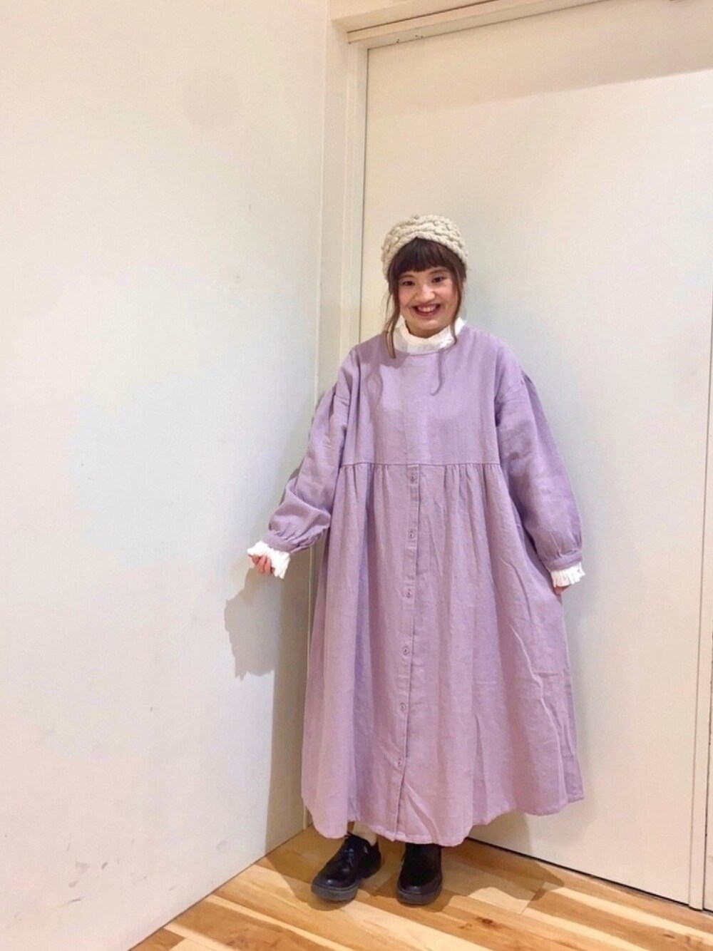 えりのワンピース「リネン混前後着ワンピース」を使ったコーディネート