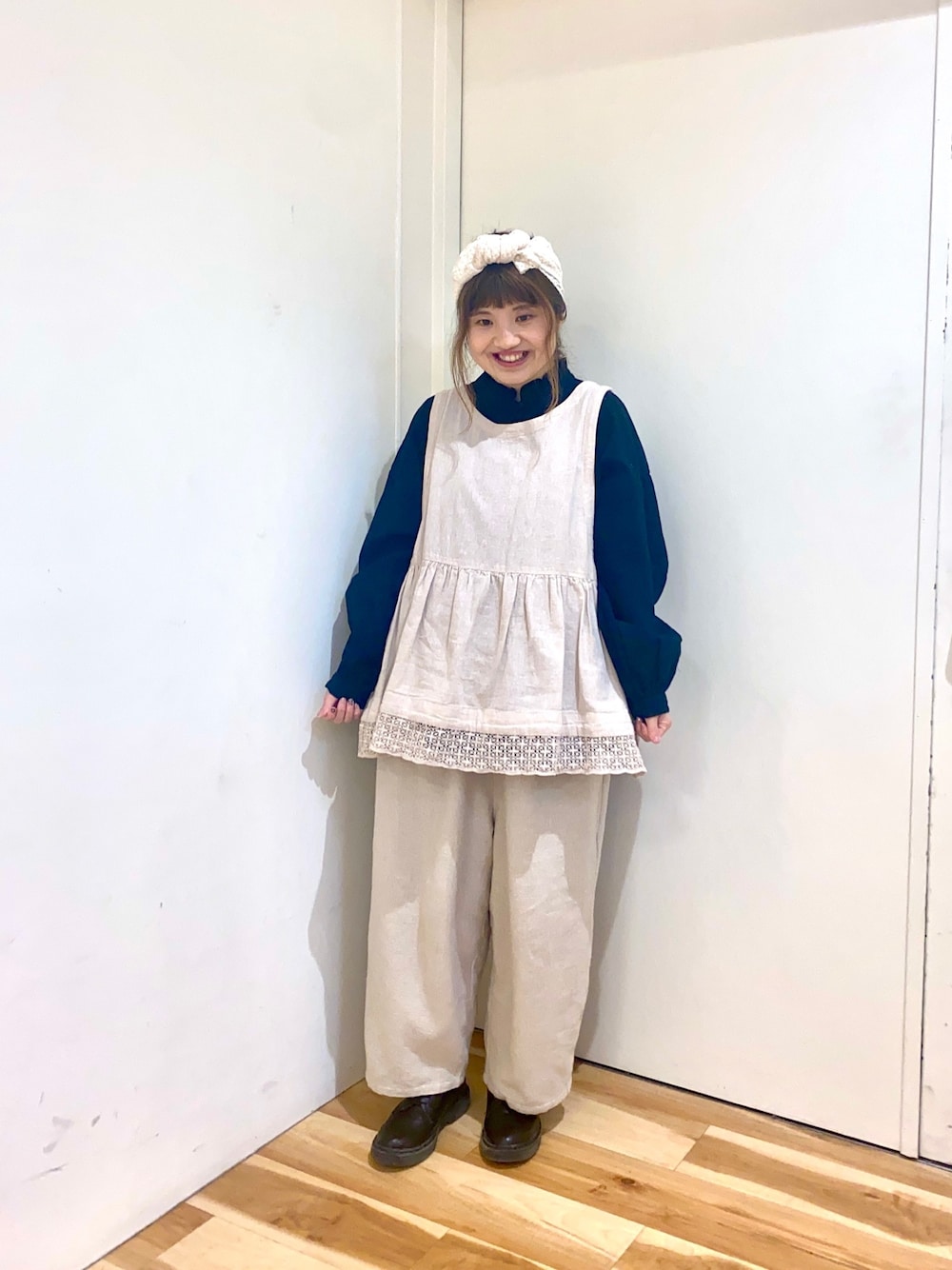 えりのベスト「綿麻レースベスト」を使ったコーディネート
