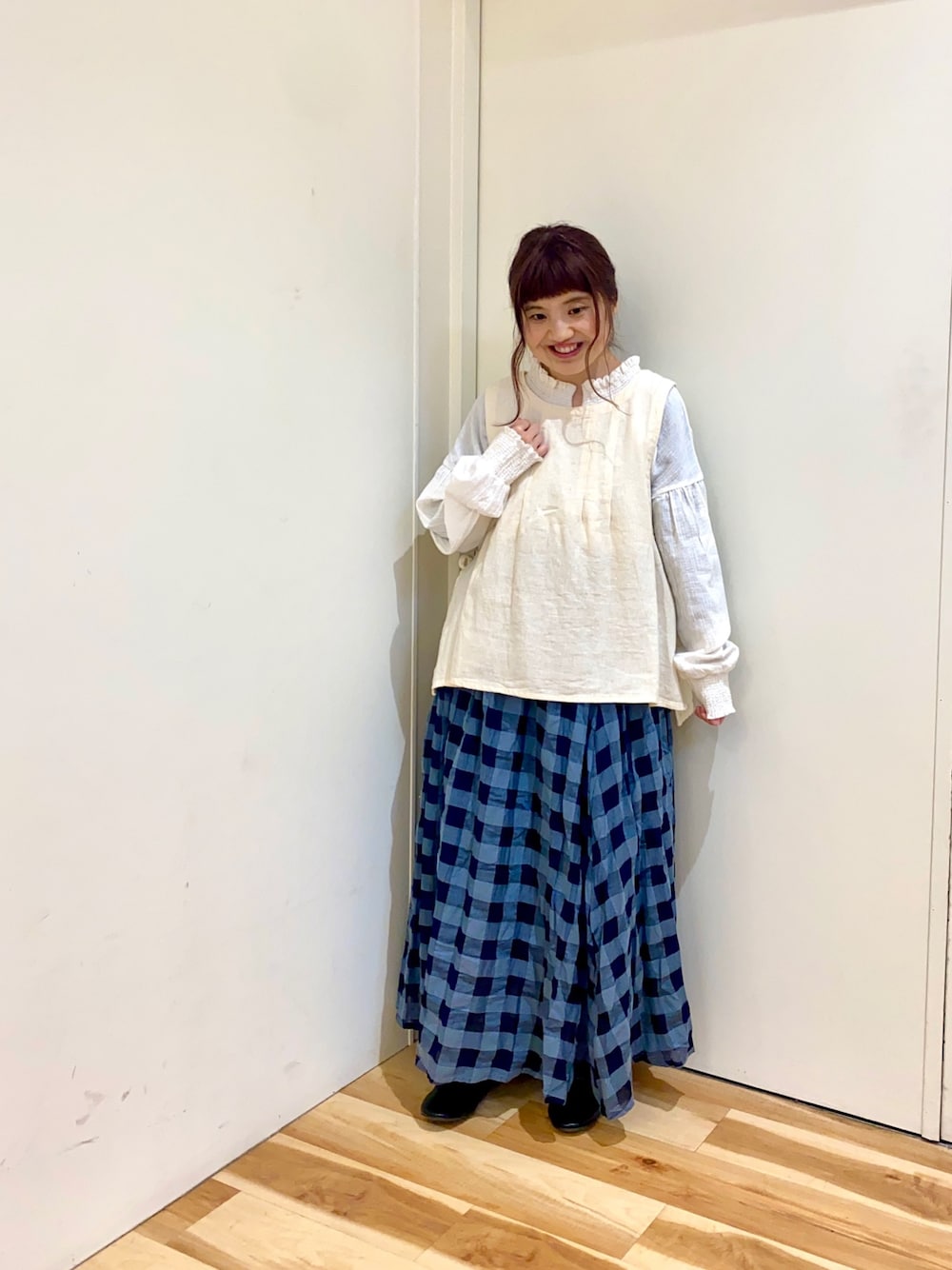 えりのベスト「綿麻ツイルタックベスト」を使ったコーディネート