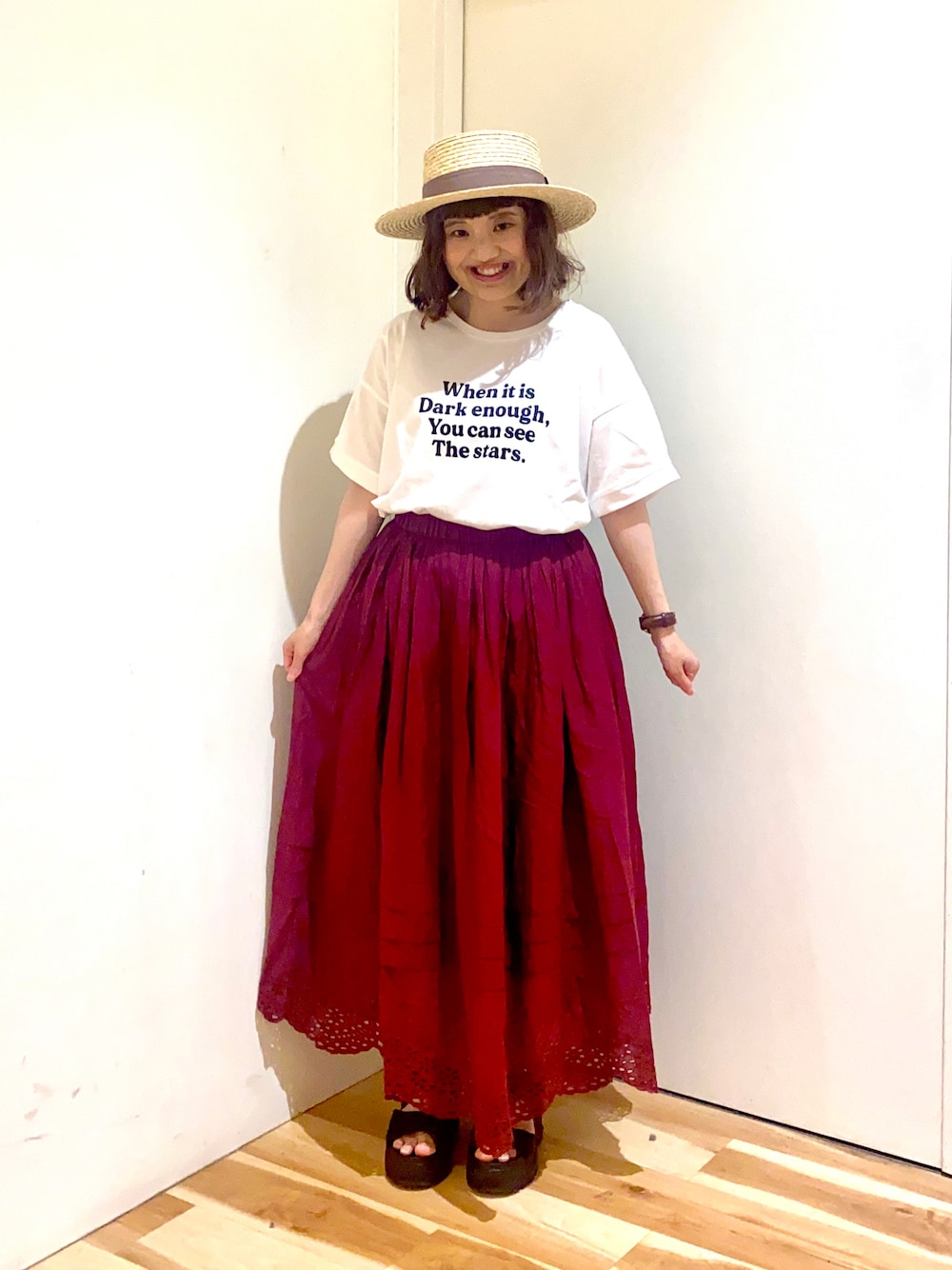 おはようございます☀︎ いつもご覧下さりありがとうございます😊 ロゴTと赤のスカートでキレイめコーデ🍧 Tシャツは袖のタックが可愛いです♪ スカートは裾スカラップがポイントで 透け感もあるので上品な印象にも✨ カラー展開豊富なので近隣の店舗か オンラインでチェックしてみて下さい! 🏖SM2 keittioゆめタウン東広島店 サマーセール開催中!!! 🚨お知らせ🚨 CAN のアプリにあるコーディネート一覧で スタッフコーディネートに私のコーデも 投稿することになりました!! すぐアプリへ飛べるようプロフィールに リンクを貼っているので よかったらチェックして下さると嬉しいです💖 -------------------------ーーーー ●SM2 Keittio ゆめタウン東広島店● WEARスタッフアカウント みやもとなのこ 【@nnk77】 miki.m 【@mktk0819】 LINA 【@lina880】 是非フォローお願いします🧸💗