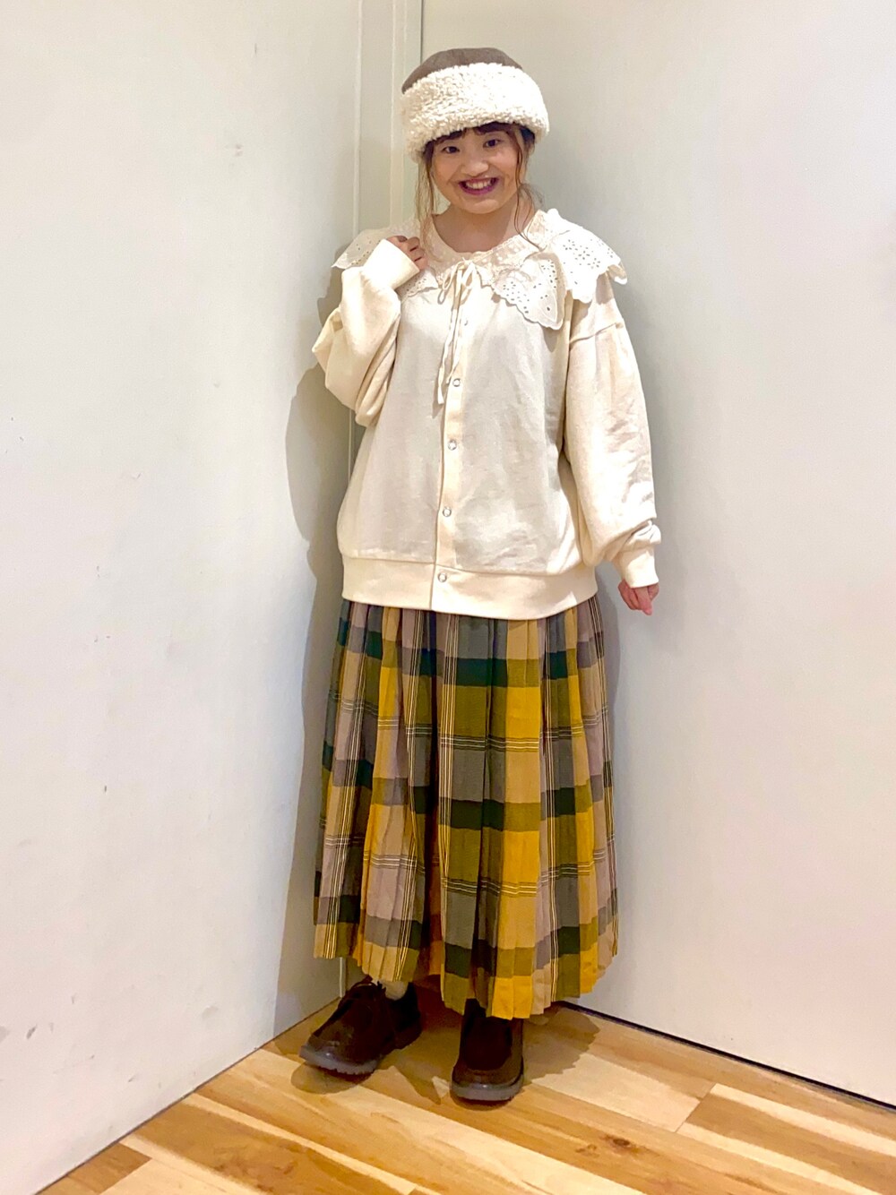 えりのカーディガン/ボレロ「ミニ裏毛前後着カーディガン」を使ったコーディネート