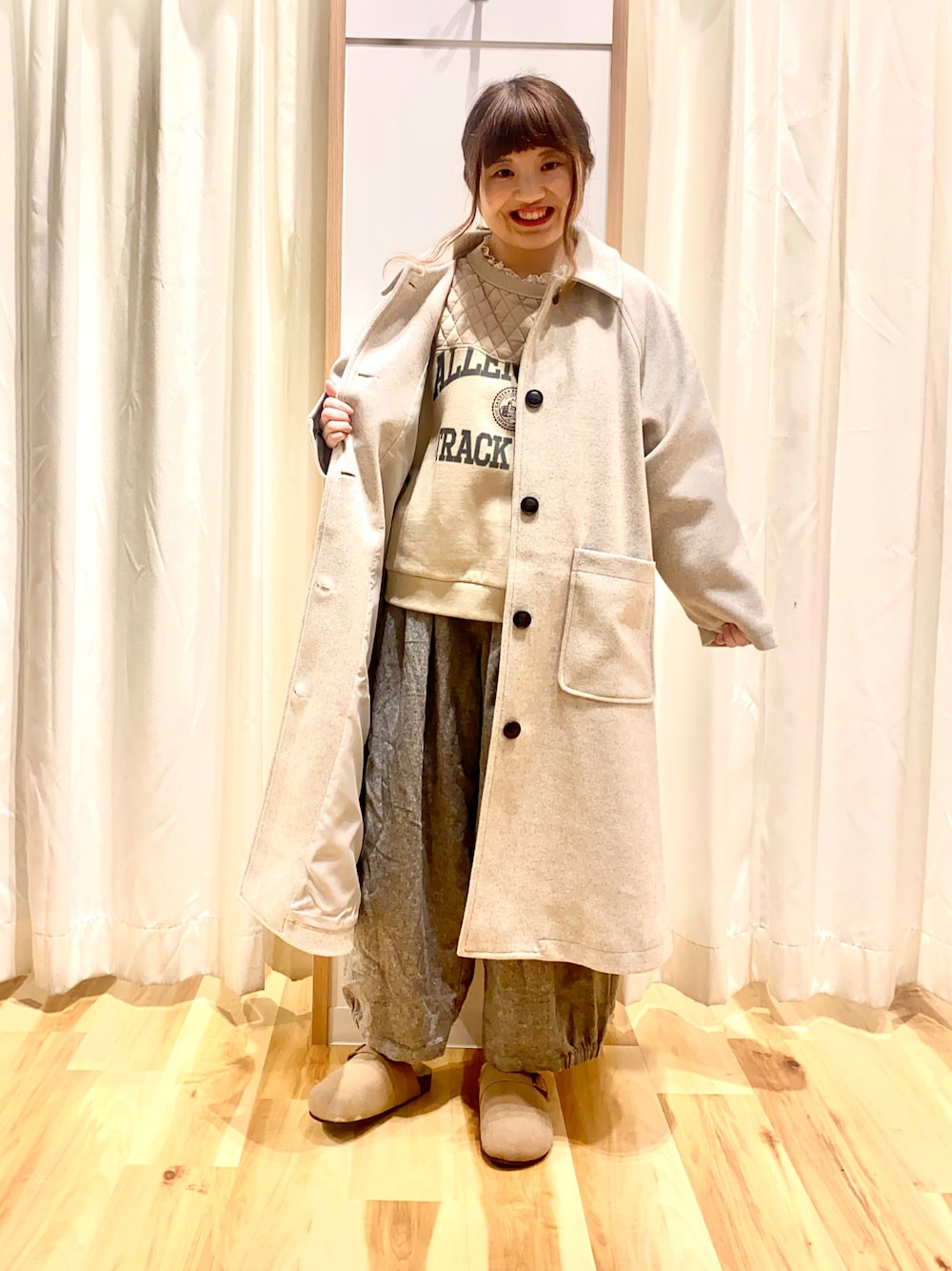 おはようございます☀︎ いつもご覧下さりありがとうございます😊 キルティングデザインがポイントの スウェットでカジュアルコーデ🦔 スウェットは裏毛素材で温かく着心地も抜群です♫ バルーンパンツと合わせてゆるゆるに🛁