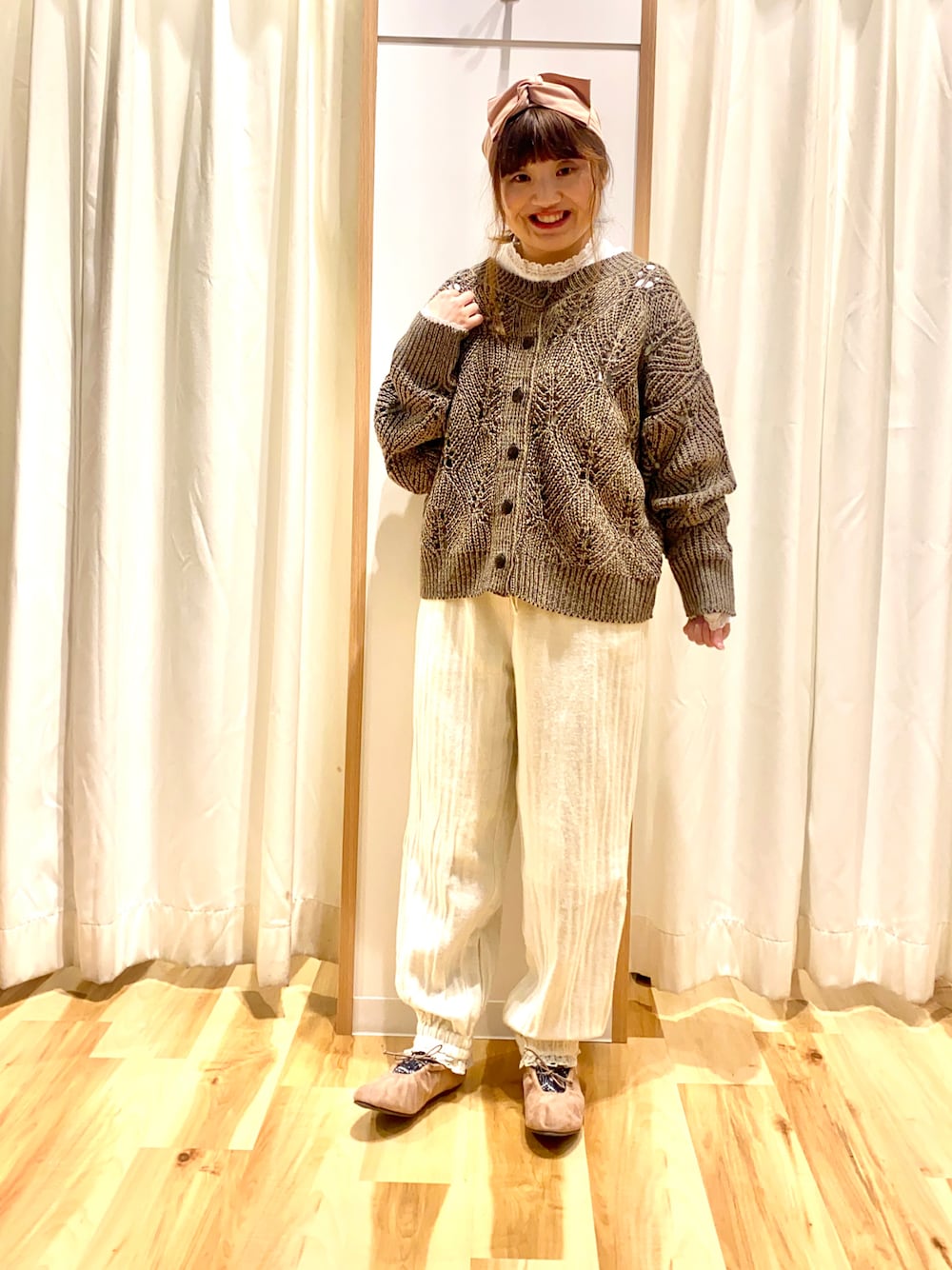 おはようございます☀︎ いつもご覧下さりありがとうございます😊 前後着ニットと裾レースパンツでガーリーコーデ🐻 カーディガンは短めの丈なので ボトムスとの相性抜群です♫ ボトムスの色に合わせて中着のブラウスも 白のものにしました🥛