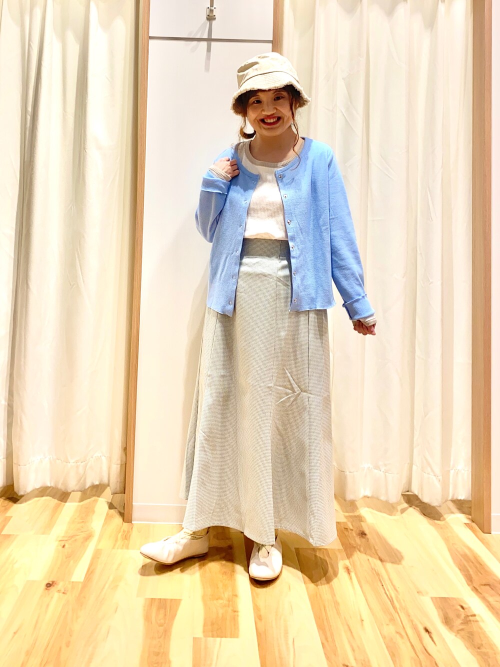 おはようございます☀︎ いつもご覧頂きありがとうございます😊 カーディガンとマーメイドスカートで キレイめコーデ🐠 カーディガンはワッフル生地で サラッとした肌触りなので着心地抜群です♫ 丈感も短めなのでボトムスとの相性も◎