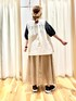 おはようございます☀︎ いつもご覧頂きありがとうございます😊 ノースリーブのブラウスをベスト風に着て ガーリーコーデ🐏 ブラウスは薄手なので単体で着たり 重ね着で着たりと着回し抜群です✨ ベージュのスカートと合わせて ナチュラルな雰囲気にしました♫