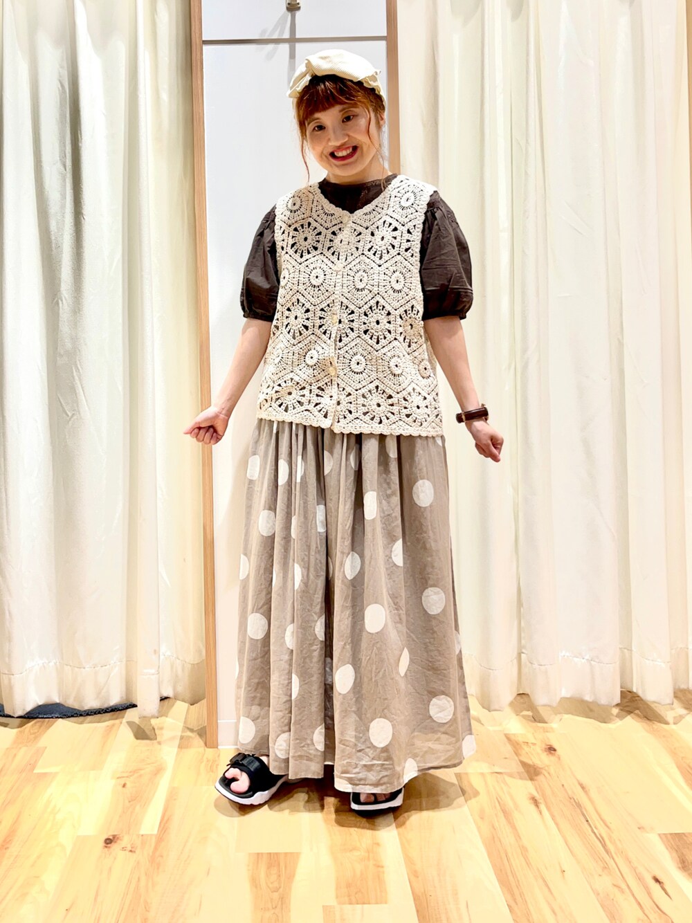 えりのベスト「かぎ針風ベスト」を使ったコーディネート