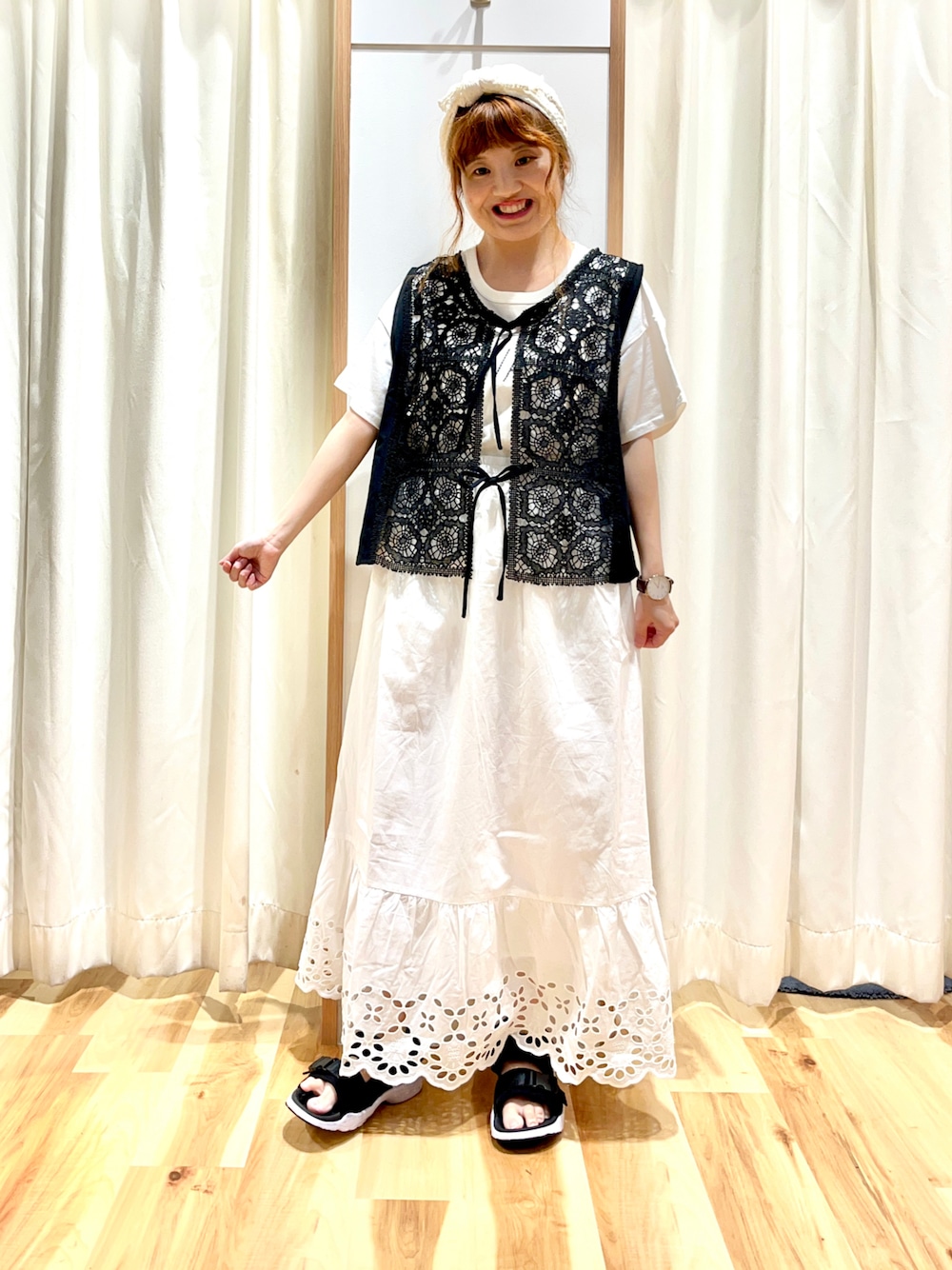 えりのベスト「モチーフレースベスト」を使ったコーディネート