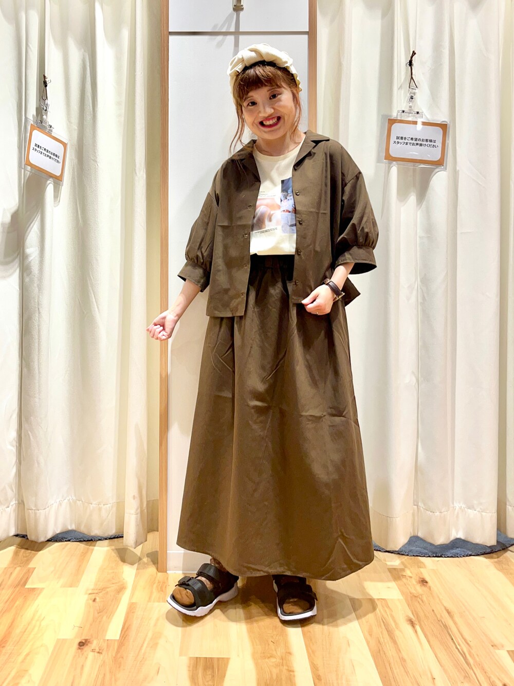 おはようございます☀︎ いつもご覧頂きありがとうございます😊 開襟シャツとタックスカートで セットアップコーデ🐻 フォトプリントTと合わせて カジュアルにしました♫