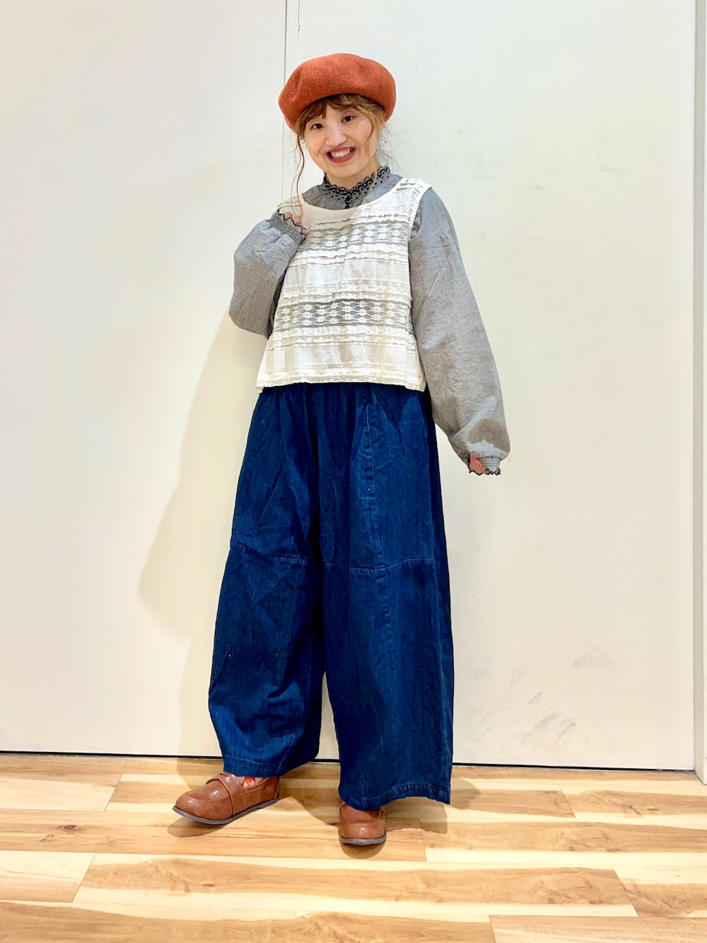 えりのベスト「オーバーレースカットベスト」を使ったコーディネート