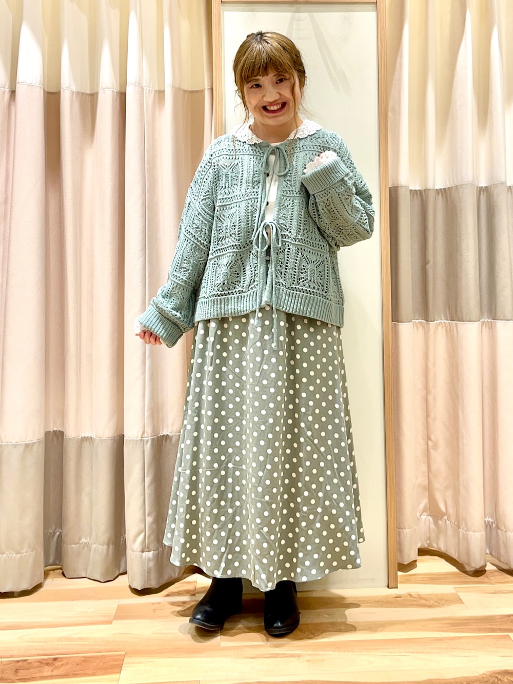 おはようございます☀︎ いつもご覧頂きありがとうございます😊 昨日投稿した色違いのニットと マーメイドスカートでガーリーコーデ🐟 ミント×ミントでワントーンコーデに! スカートはマーメイドデザインなので脚長効果◎ 短めの丈なので低身長の方にもオススメです✊🏻