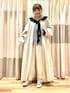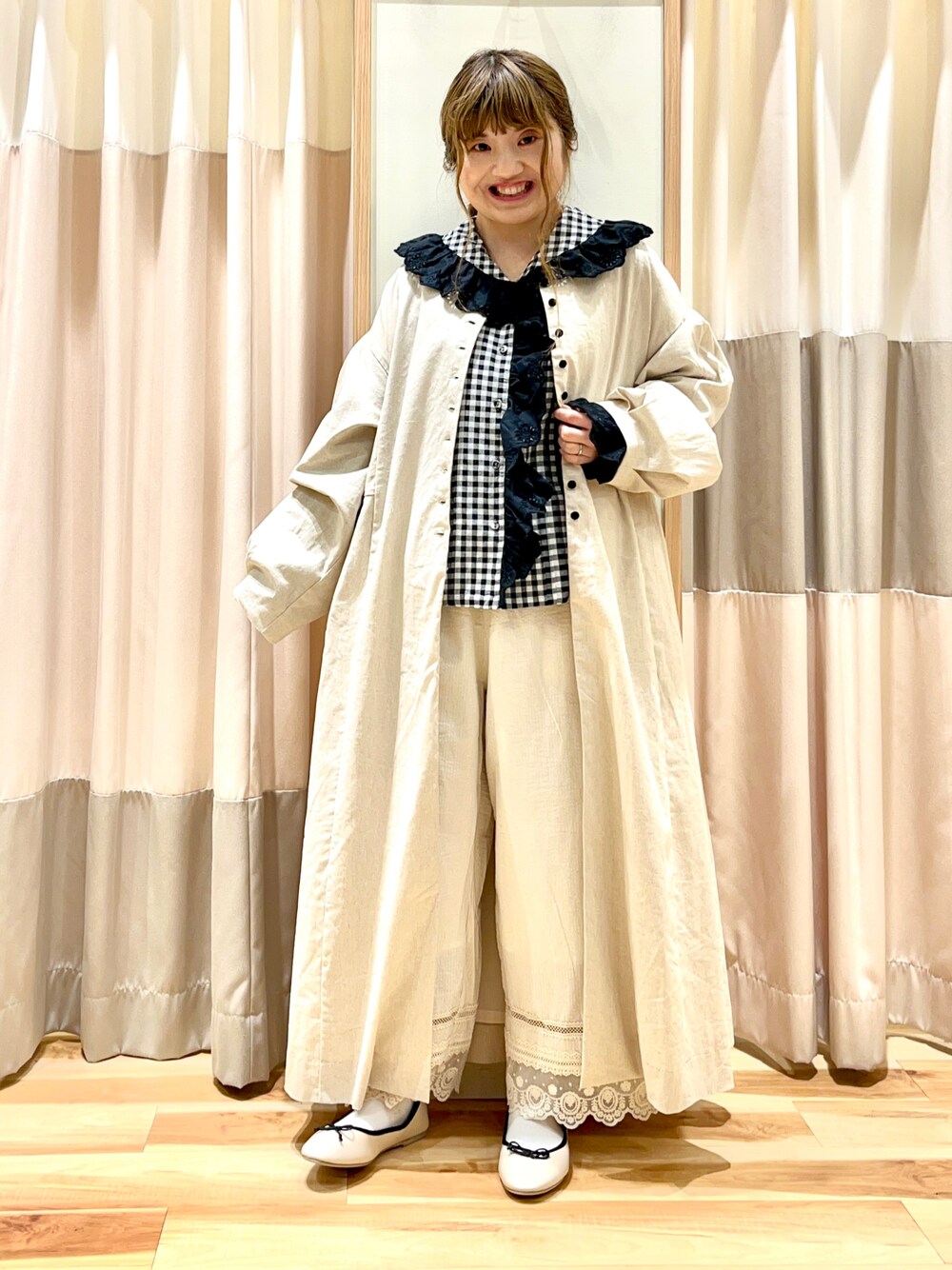 おはようございます☀︎ いつもご覧頂きありがとうございます😊 ビッグ襟と胸元のフリルがポイントのブラウスと レースペチパンツでガーリーコーデ🐻 コートがノーカラーなので 襟付きのブラウスと合わせて華やかにしました♫ 後ろリボンの配色とマッチしてて可愛いです✨
