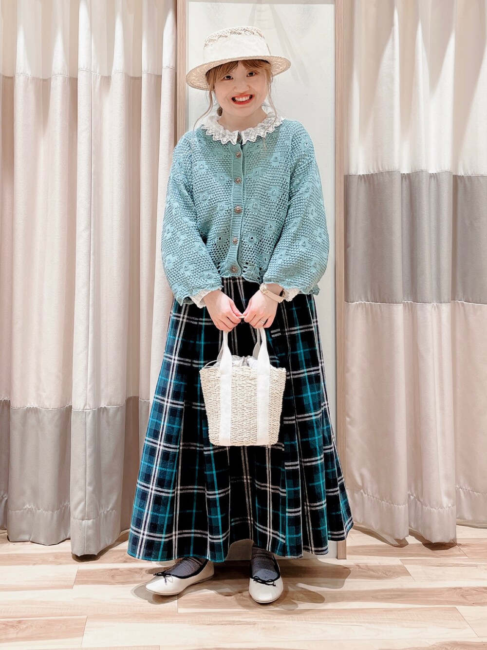 えりのカーディガン/ボレロ「綿麻花モチーフニットカーディガン」を使ったコーディネート