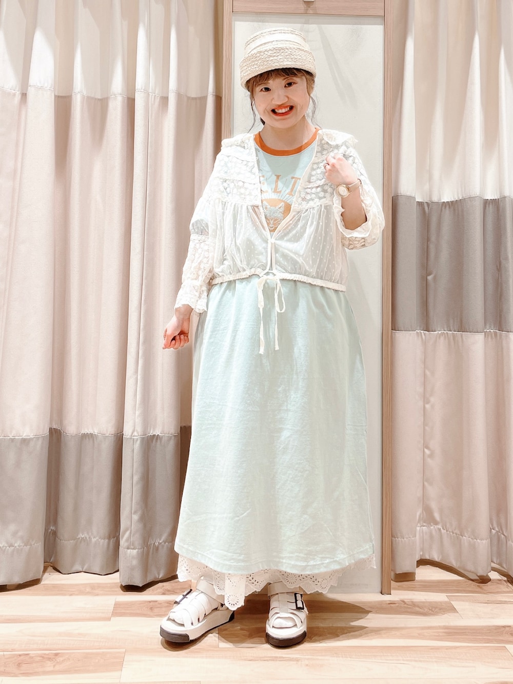 おはようございます☀︎ いつもご覧頂きありがとうございます😊 チュールレースのブラウスと Tシャツワンピースでカジュアル×ガーリーのmixコーデ🦦 ワンピースはKELTYコラボです! 配色デザインとロゴがポイントで可愛いです♫ トップスがレースなので スカートもレースにしてガーリー要素も🪞