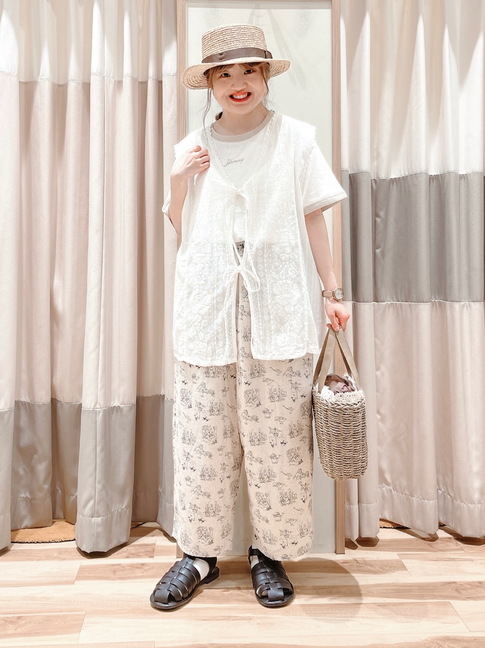 おはようございます☀︎ いつもご覧頂きありがとうございます😊 羽織ブラウスとロゴTシャツで ガーリー×カジュアルのmixコーデ🦥 中にTシャツを着るとカジュアルな着こなしも出来るので 羽織ブラウスは着回し抜群です♫