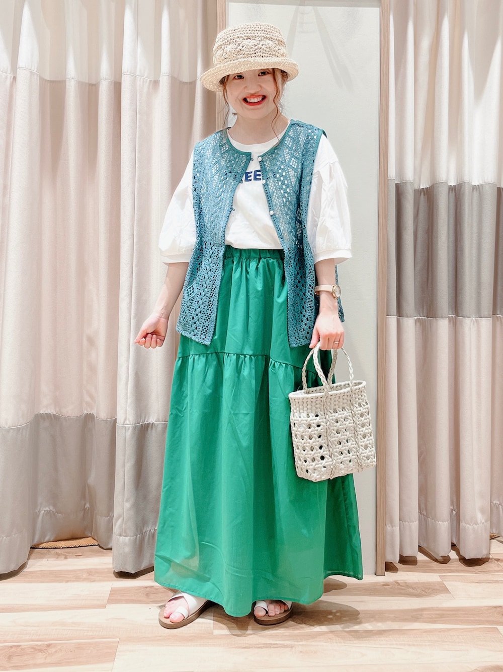 おはようございます☀︎ いつもご覧頂きありがとうございます😊 セットアイテムのトップスとティアードスカートで ガーリーコーデ🐢 スカートは先程投稿した色違いです♫ グリーン×グリーンでワントーンコーデに⛳️