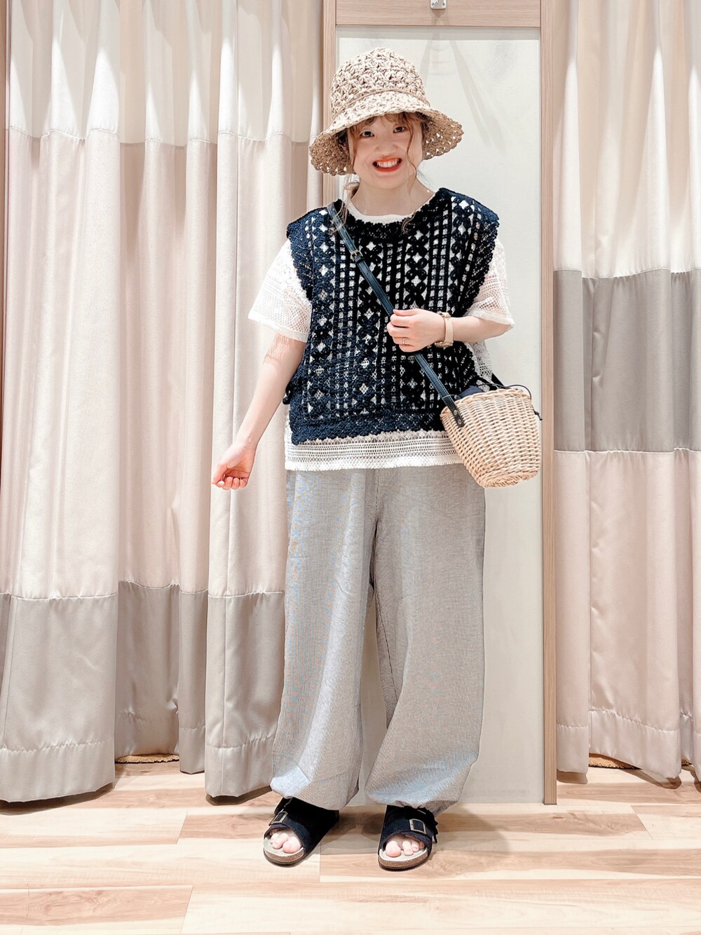 えりのベスト「かぎ針風ニットベスト」を使ったコーディネート
