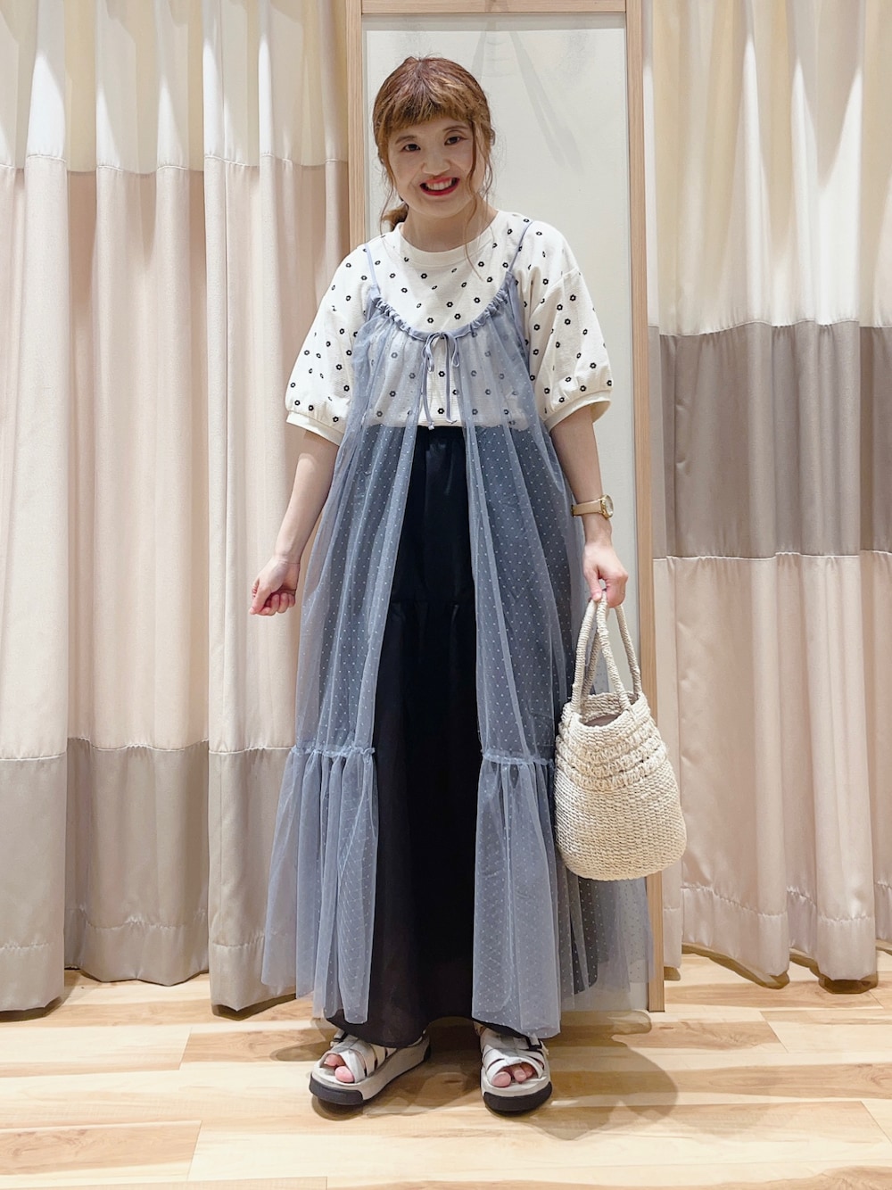 おはようございます☀︎ いつもご覧頂きありがとうございます😊 チュールワンピ着回しコーデ♫ ティアードスカートと合わせてガーリーコーデ🐈⬛ ブルー×ブラックで爽やかコーデに🍨