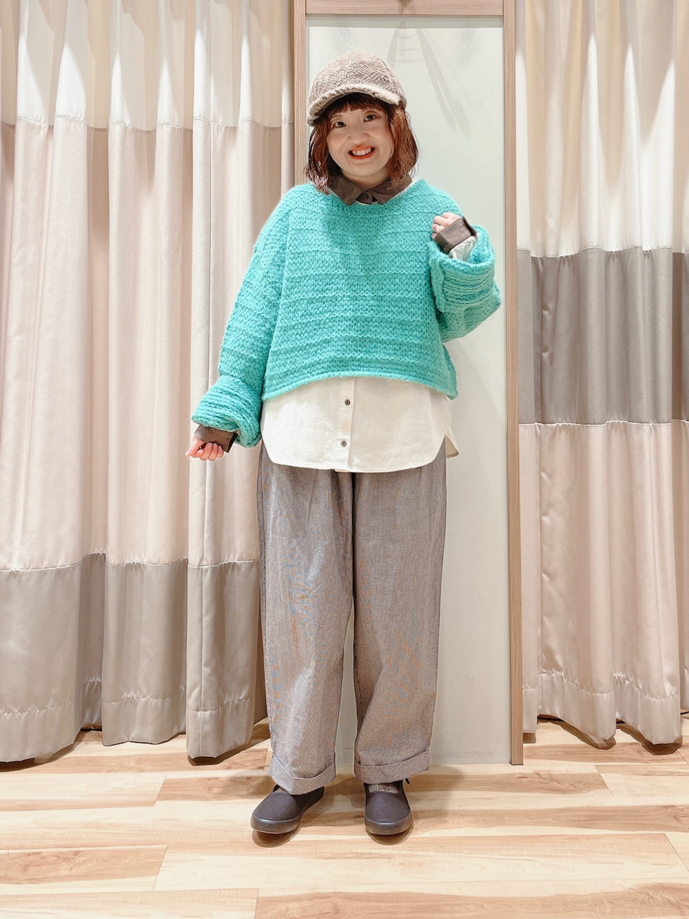 おはようございます☀︎ いつもご覧頂きありがとうございます😊 グリーンのニットを差し色にして カジュアルコーデ🦖 ニットの中はクレリックシャツを着ていて レイヤードスタイルに♫