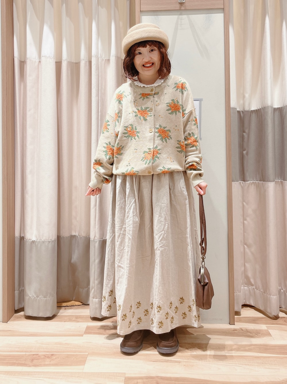 おはようございます☀︎ いつもご覧頂きありがとうございます😊 ニット着回しコーデ スカートと合わせてガーリーコーデ🐣 ニットが花柄なのでスカートも花柄にしました💐