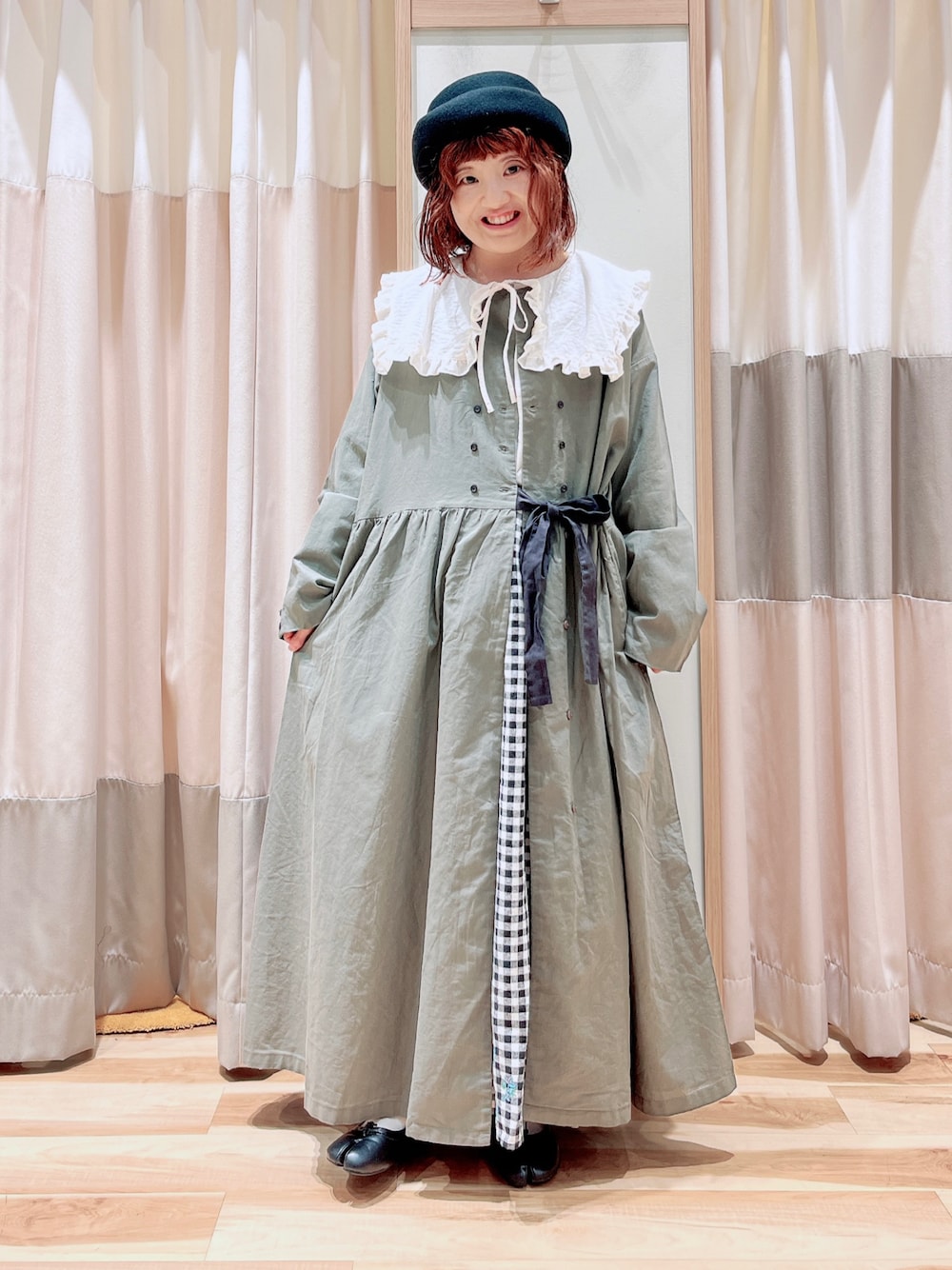 おはようございます☀︎ いつもご覧頂きありがとうございます😊 フリルセーラーカラーブラウスと コートでガーリーコーデ🦙 マカベアリスさんコラボのスカートを チラ見せしてます♫