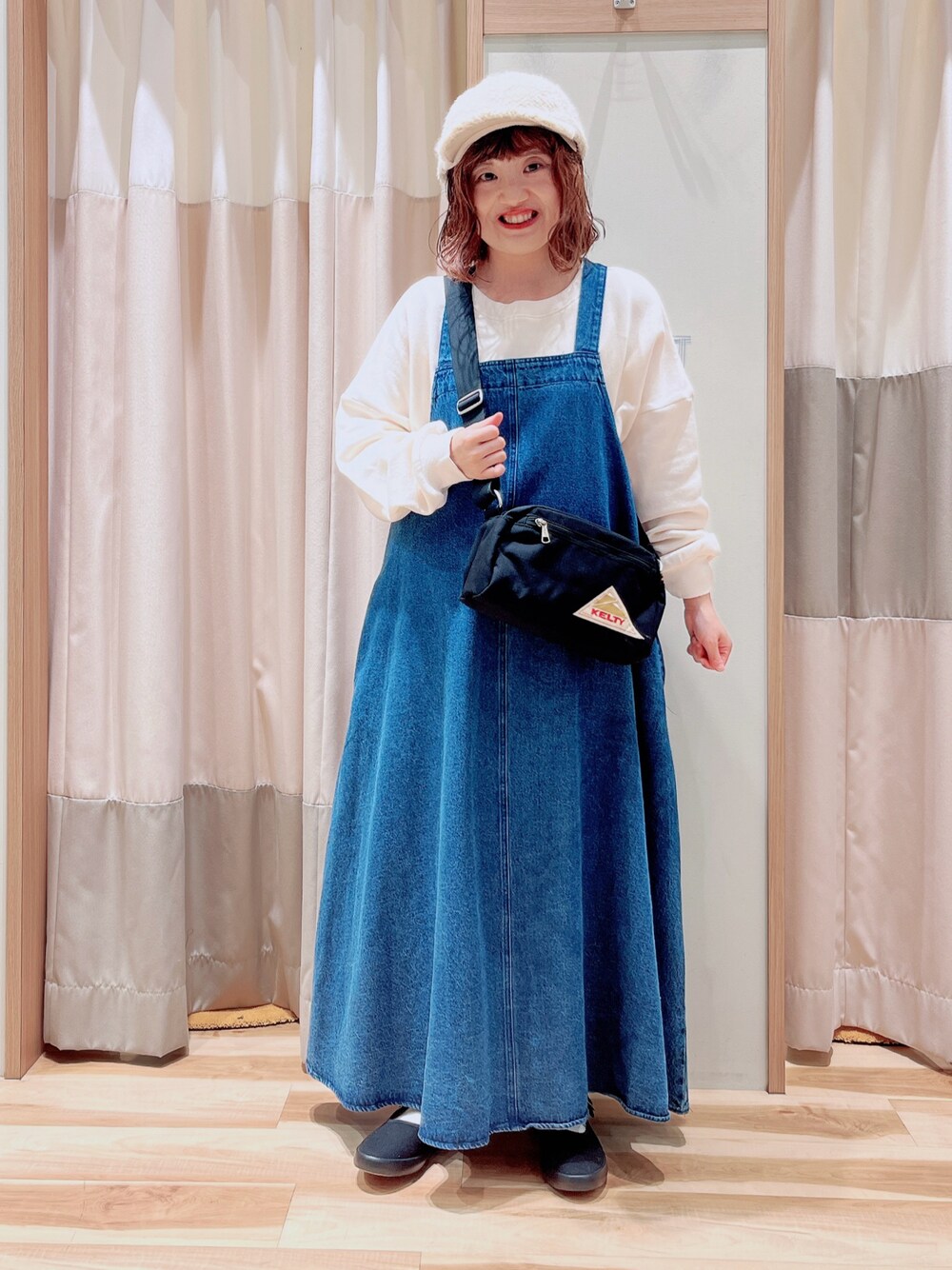 えりのワンピース「デニムジャンパースカート」を使ったコーディネート