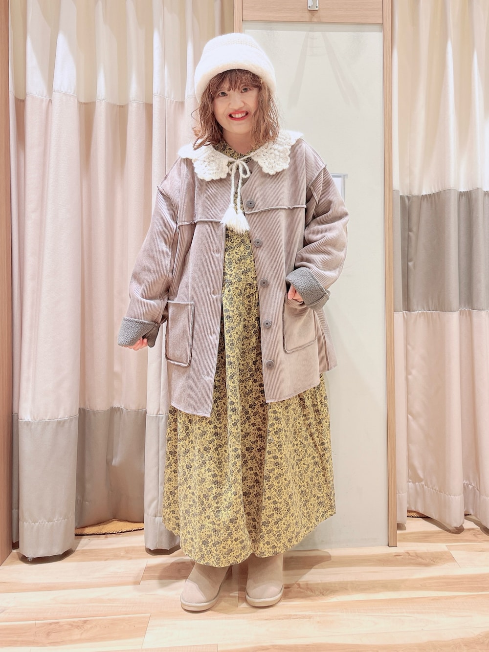 おはようございます☀︎ いつもご覧頂きありがとうございます😊 ワンピース色違いコーデ リバーシブルジャケットと合わせてガーリーコーデ🦭 ワンピースはスタンドカラーなので 顔回りスッキリした印象になります! 花柄以外にチェック柄と無地もあります♫ 付け襟を合わせて華やかな印象にしました✨